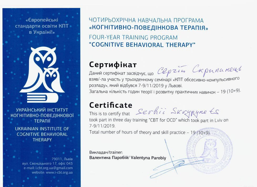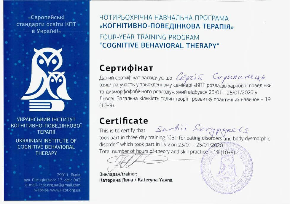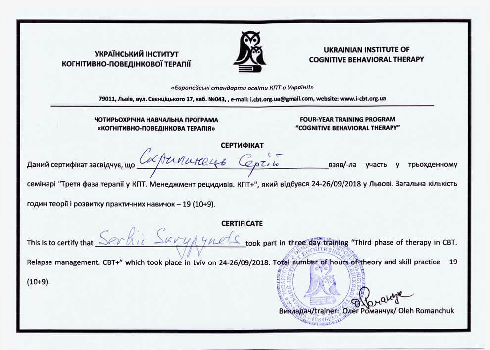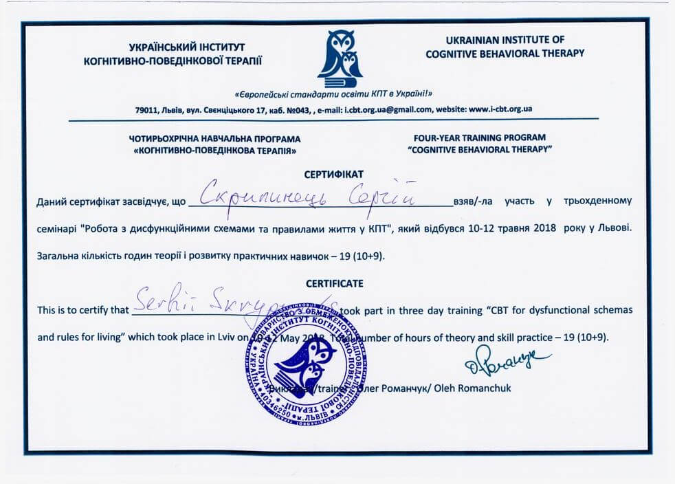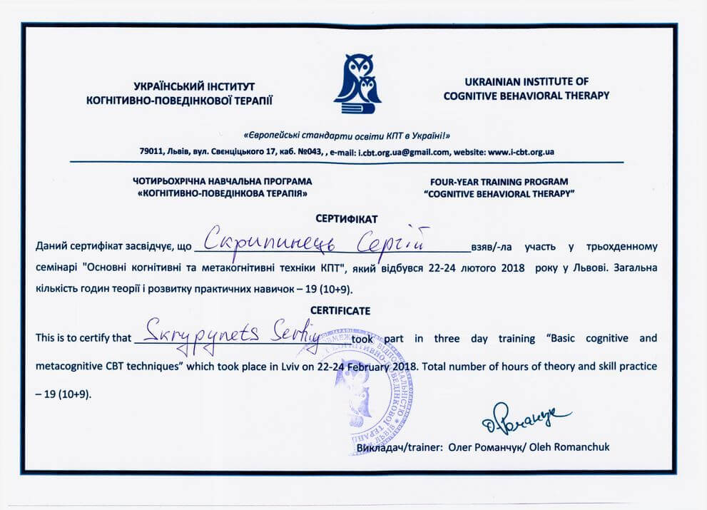 UKRAINIAN INSTITUTE OF COGNITIVE BEHAVIORAL THERAPY