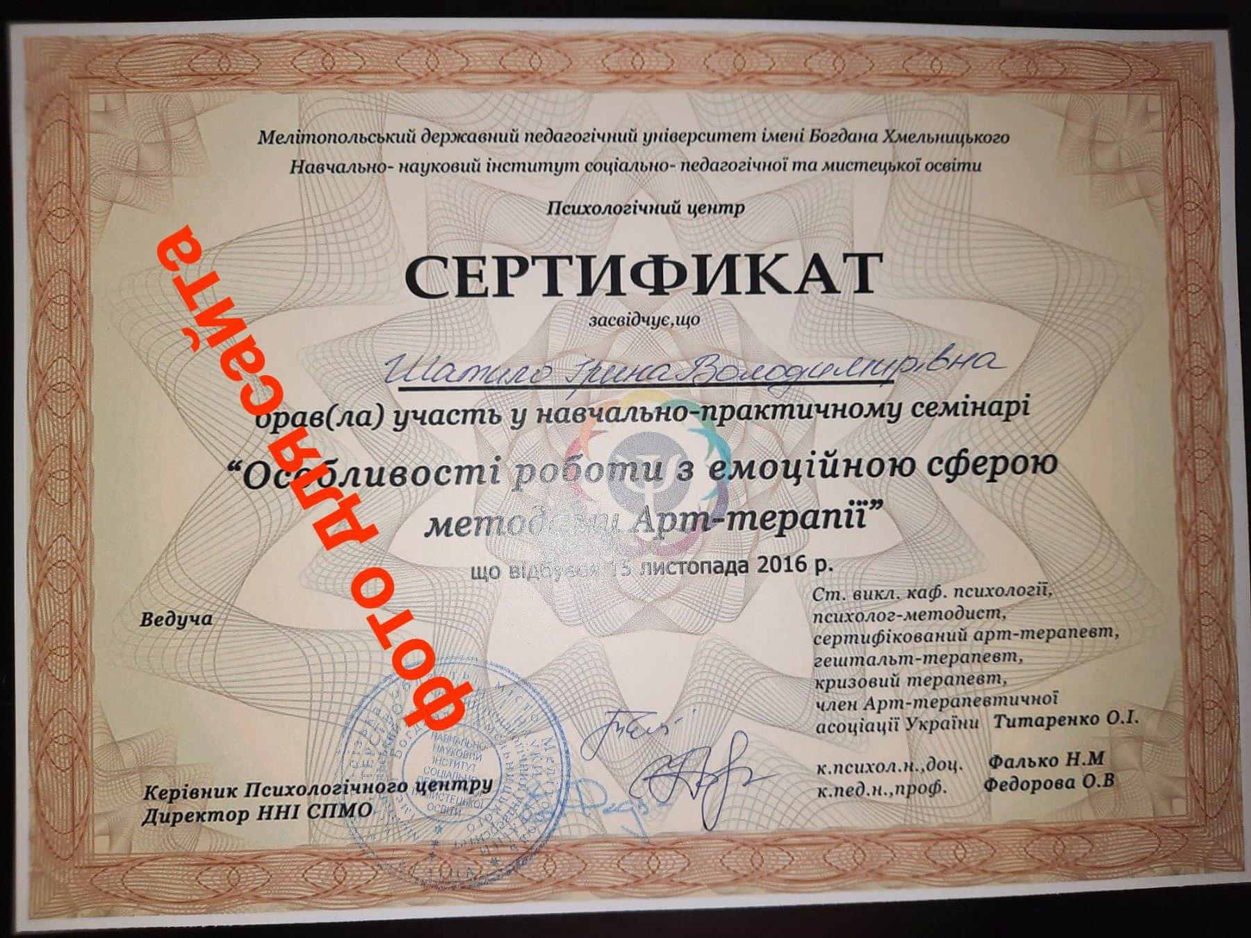 МГПУ им Богдана Хмельницкого 2014- 2018г, Киевский Гештальт Университете 1я ступень 2017-2018г.