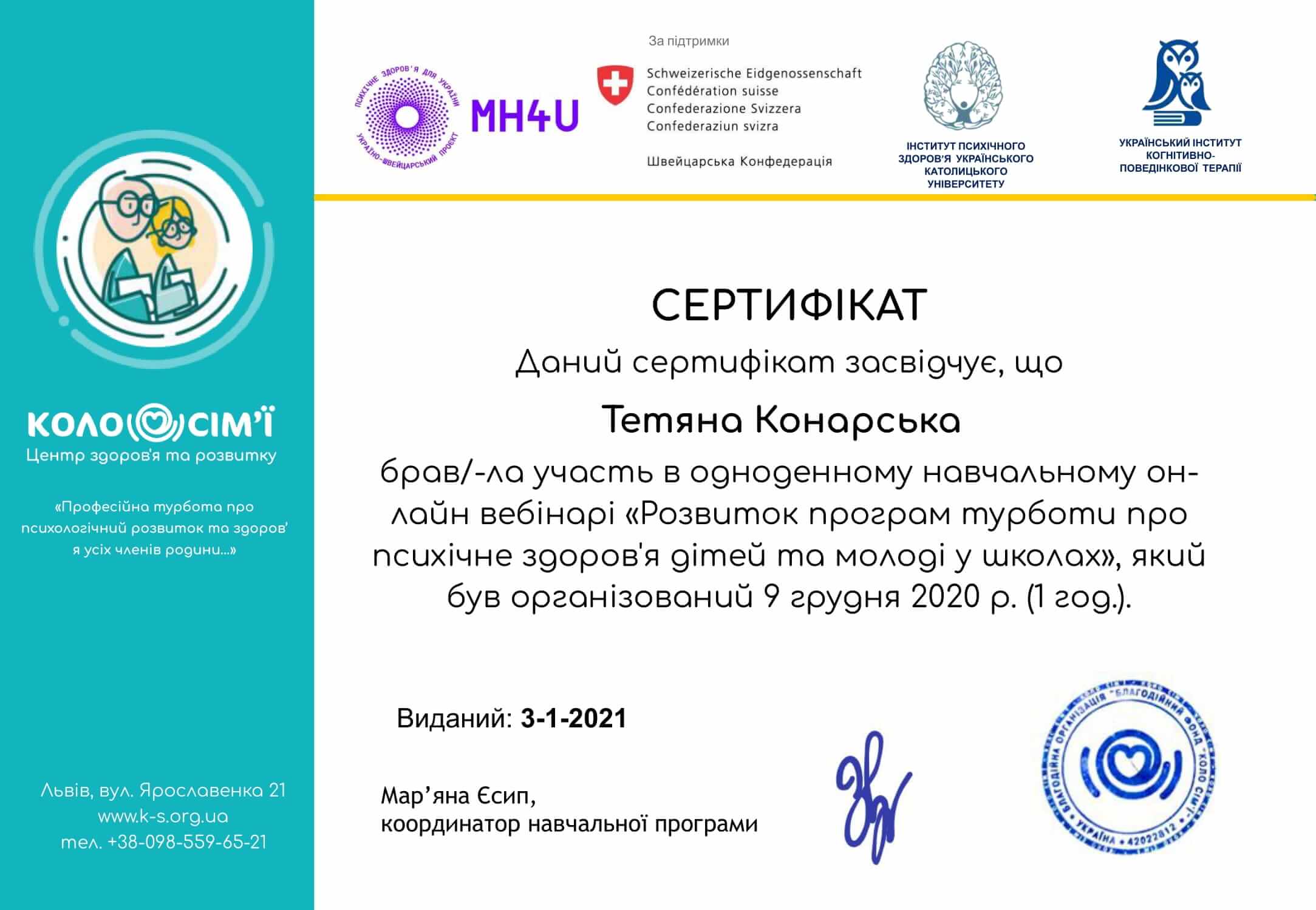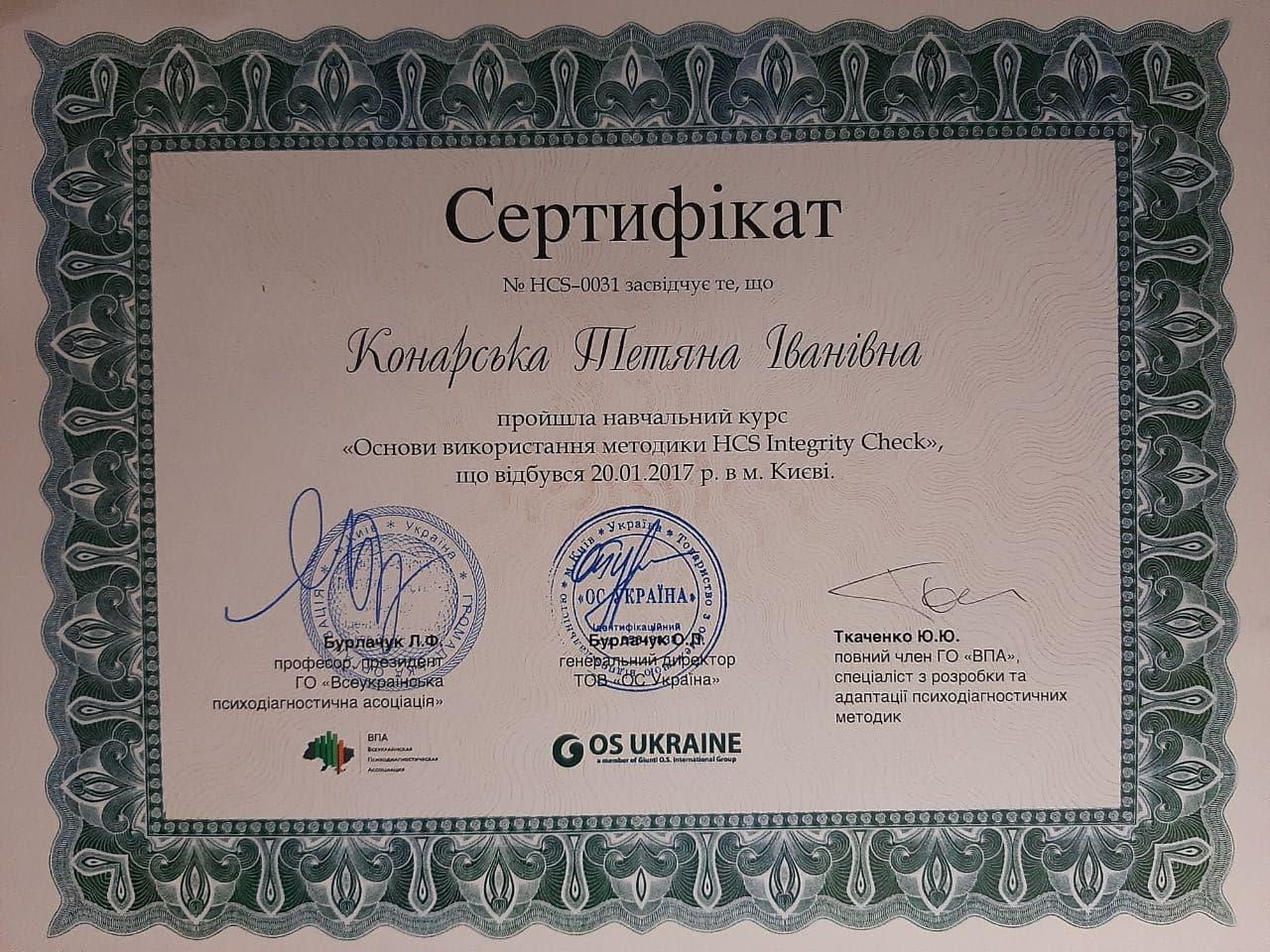 Сертификаты: