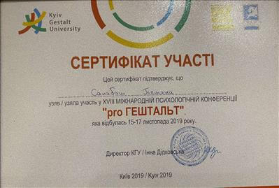 Сертификат « Работа с кризисами и травмами в гештальт-терапии»