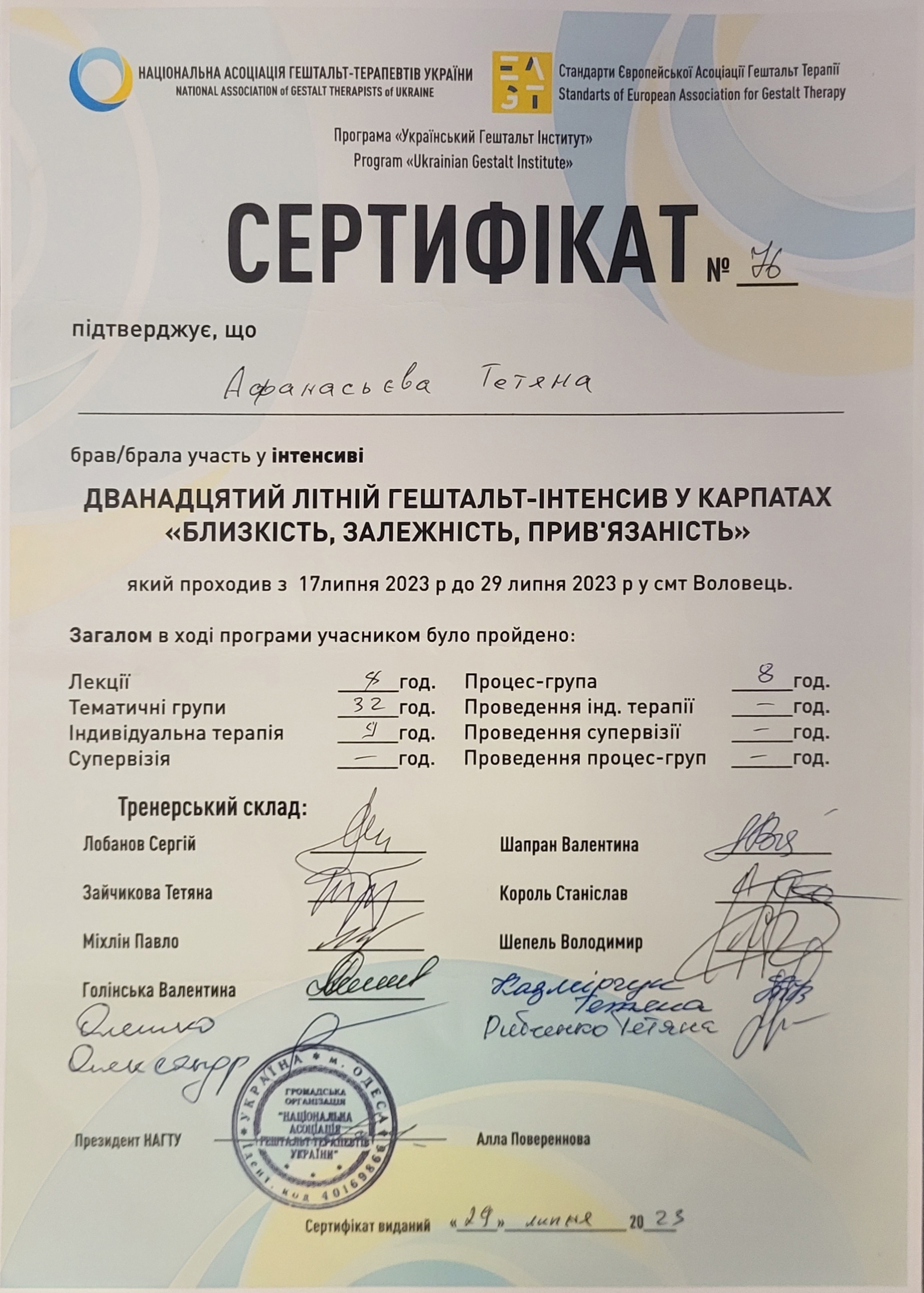 НАЦІОНАЛЬНА АСОЦІАЦІЯ ГЕШТАЛЬТ-ТЕРАПЕВТІВ УКРАЇНИ
