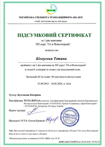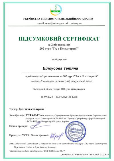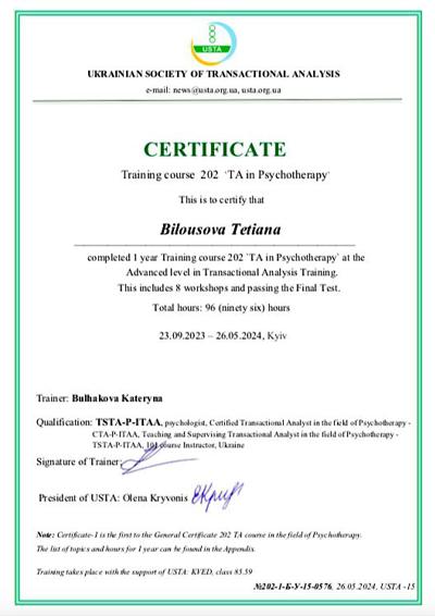 2024 г. - годовая программа "Транзакционный Анализ в Психотерапии", Украинская Сообщество Транзакционного Анализа