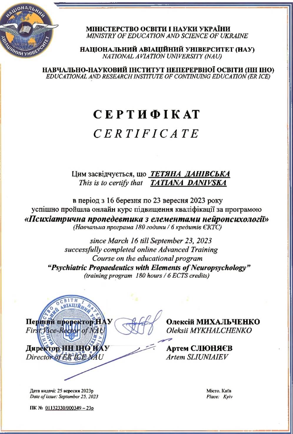 - Национальный Авиационный Университет Научный Институт Непрерывного Образования "Психиатрия с элементами нейропсихологии"