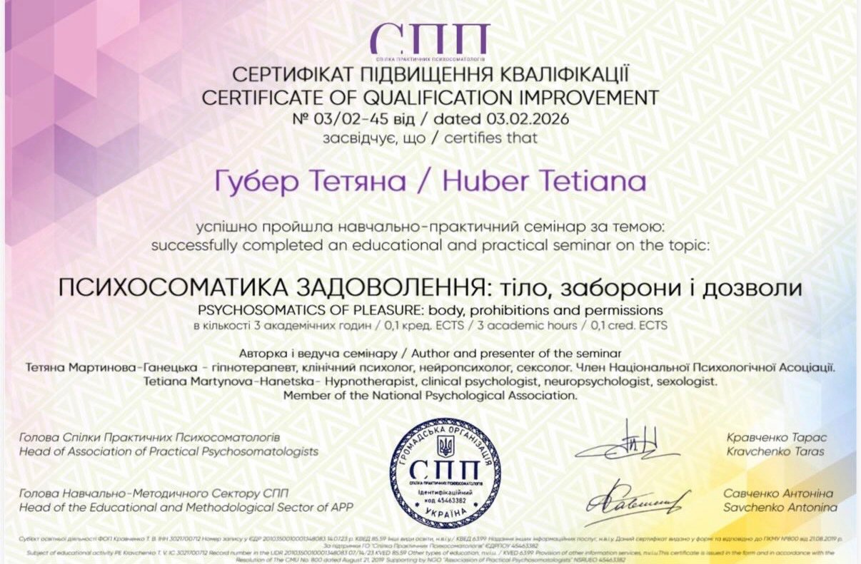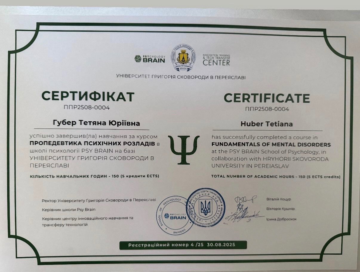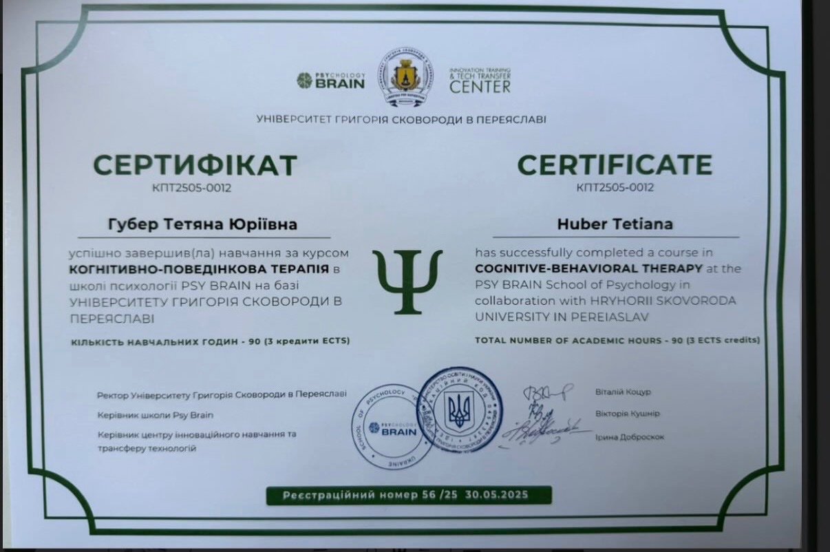 Как специалист, я постоянно учусь, прохожу дополнительные образовательные программы и профессиональные обсуждения с коллегами. Это позволяет расширять инструменты работы и поддерживать качество психологической помощи.