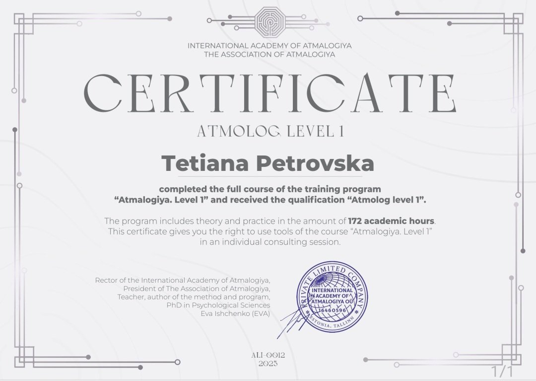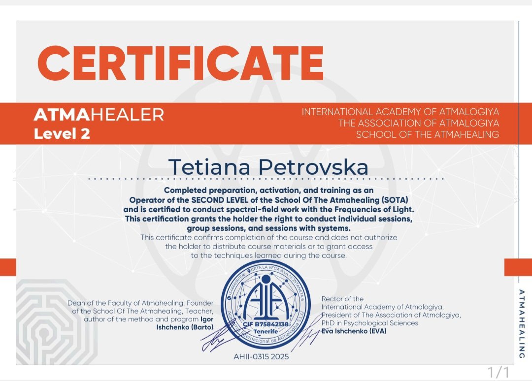 2. Завершено освітню програму ІІ ступенню професійного навчання гештальт-терапевтів/гештальт-консультантів Київського Гештальт Університету