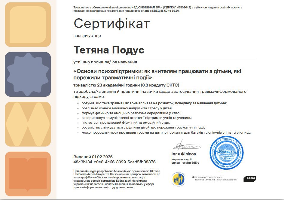 Курс « Основы психоподдержки: как учителям работать с детьми, пережившими травматические события» Учебный центр EdEra на базе международных организаций 23 часов 2026 год 0,8 кредит ЕКТС