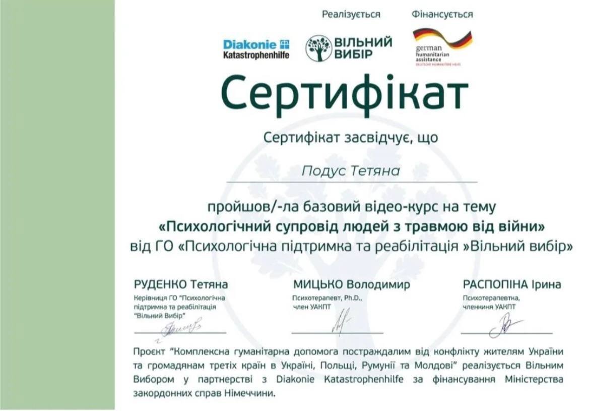 Курс «Психологическое сопровождение людей с травмой от войны» от ОО «Психологическая поддержка и реабилитация» «Свободный выбор» 20 часов 2026