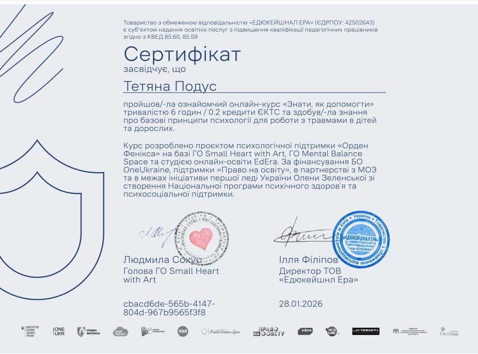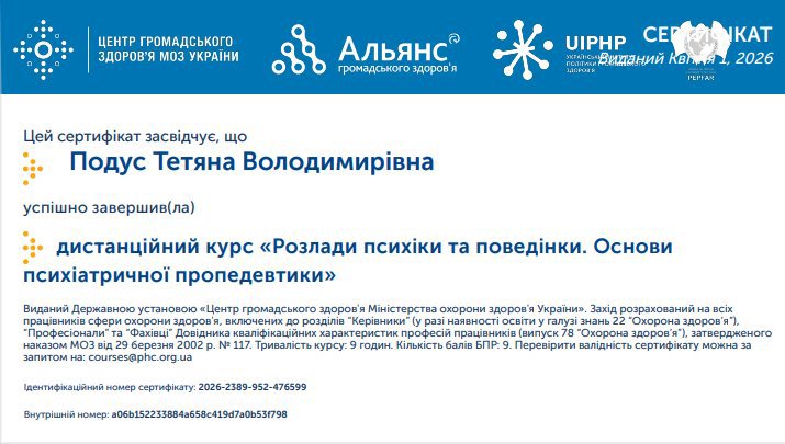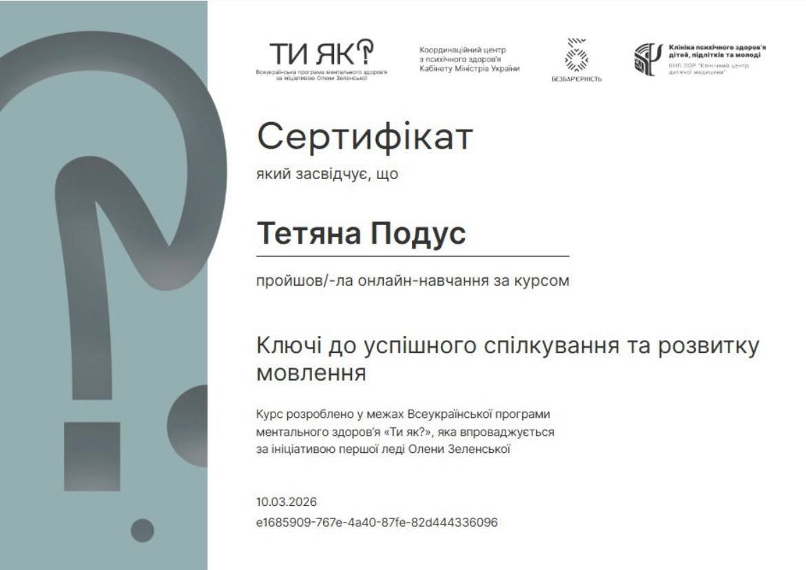 Курс "Секреты детского поведения: причины, реакции, решения". Всеукраинская организация ментального здоровья «Ты как?». Продолжительность 5 часов 2026 год