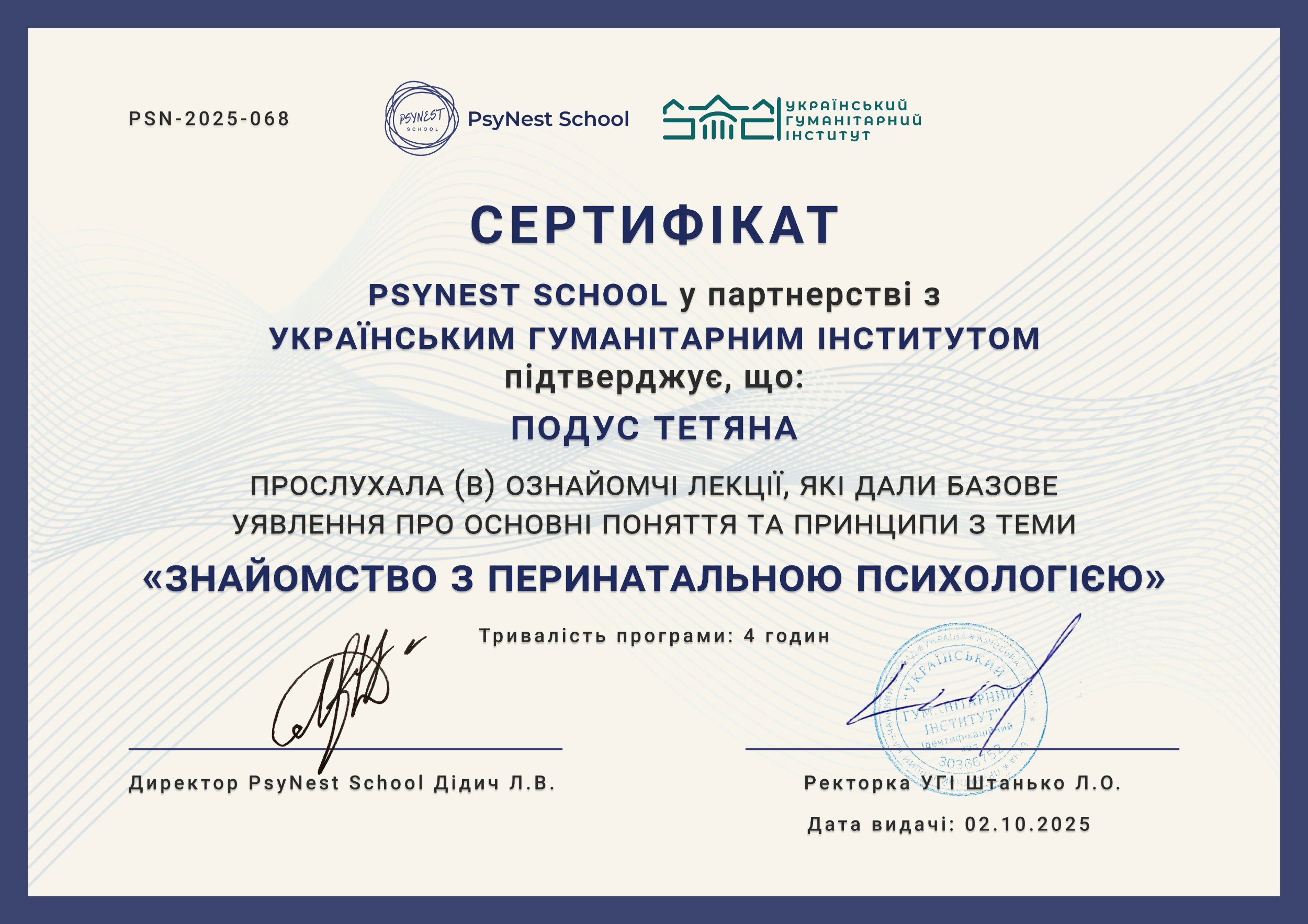 Курс «Знакомство с перинатальной психологией» PSYNEST SCHOOL в партнерстве с Украинским гуманитарным институтом продолжительность 4 часа 2025 год