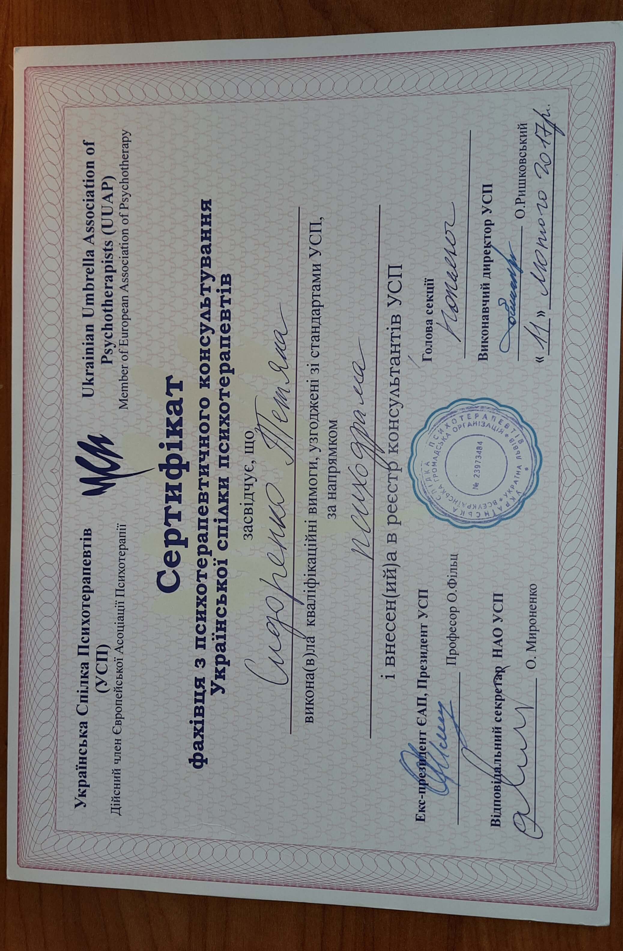 ТНПУ вы. В. Гнатюка – магистр психологии.