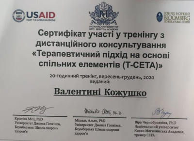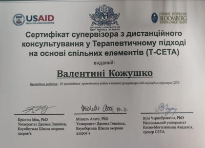 Терапевтичний підхід на основі спільних елементів (СЕТА, Т-СЕТА), консультант, супервизор.