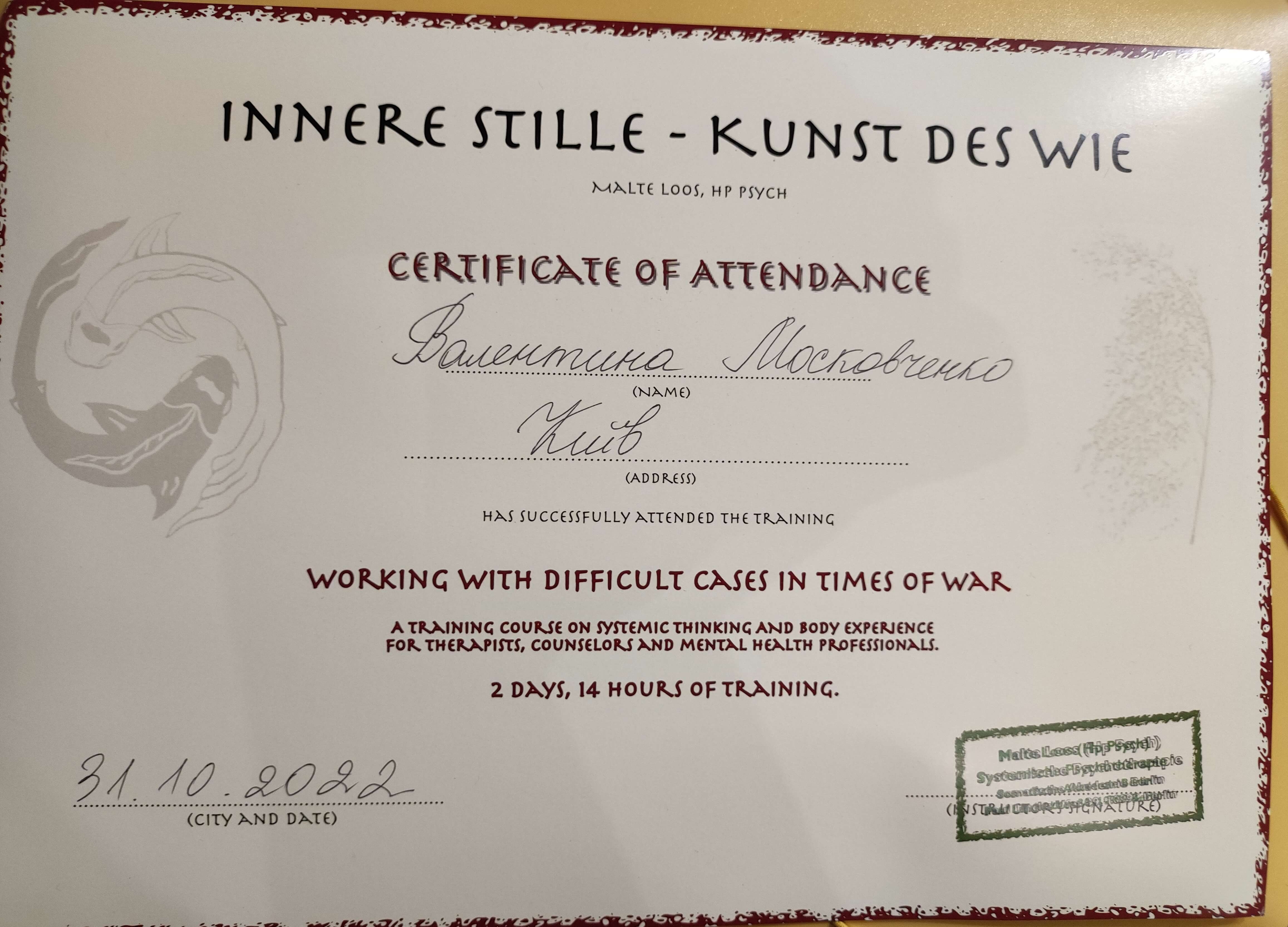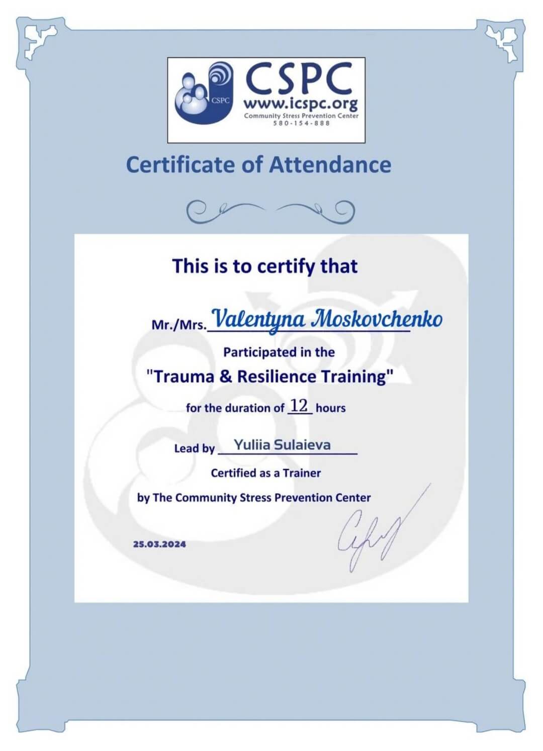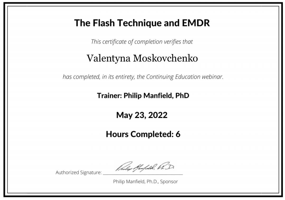 Как специалист придерживаюсь концепции непрерывного повышения квалификации, что подтверждаю сертификатами, дипломами. Также постоянно получаю супервизию и личную терапию.