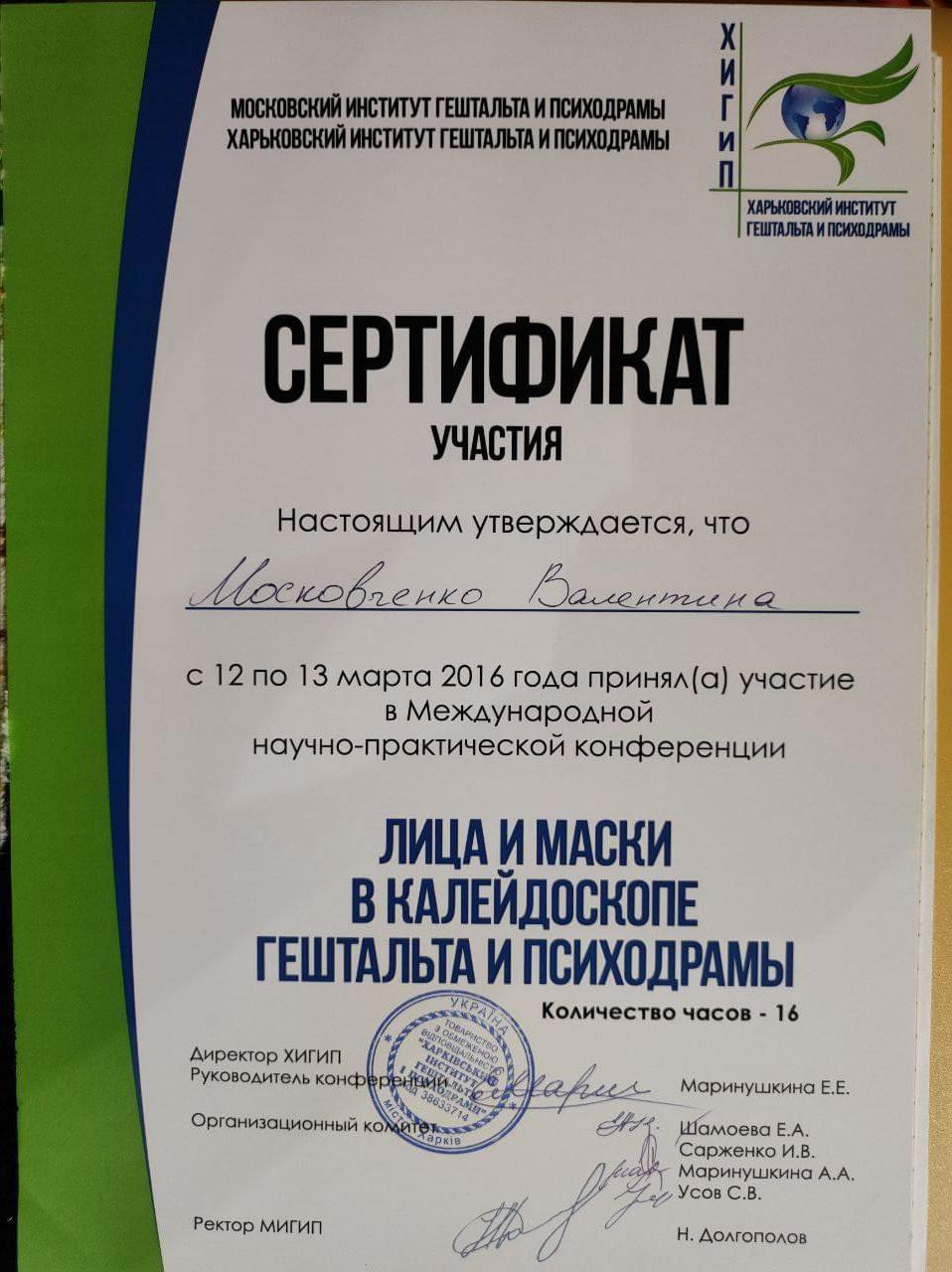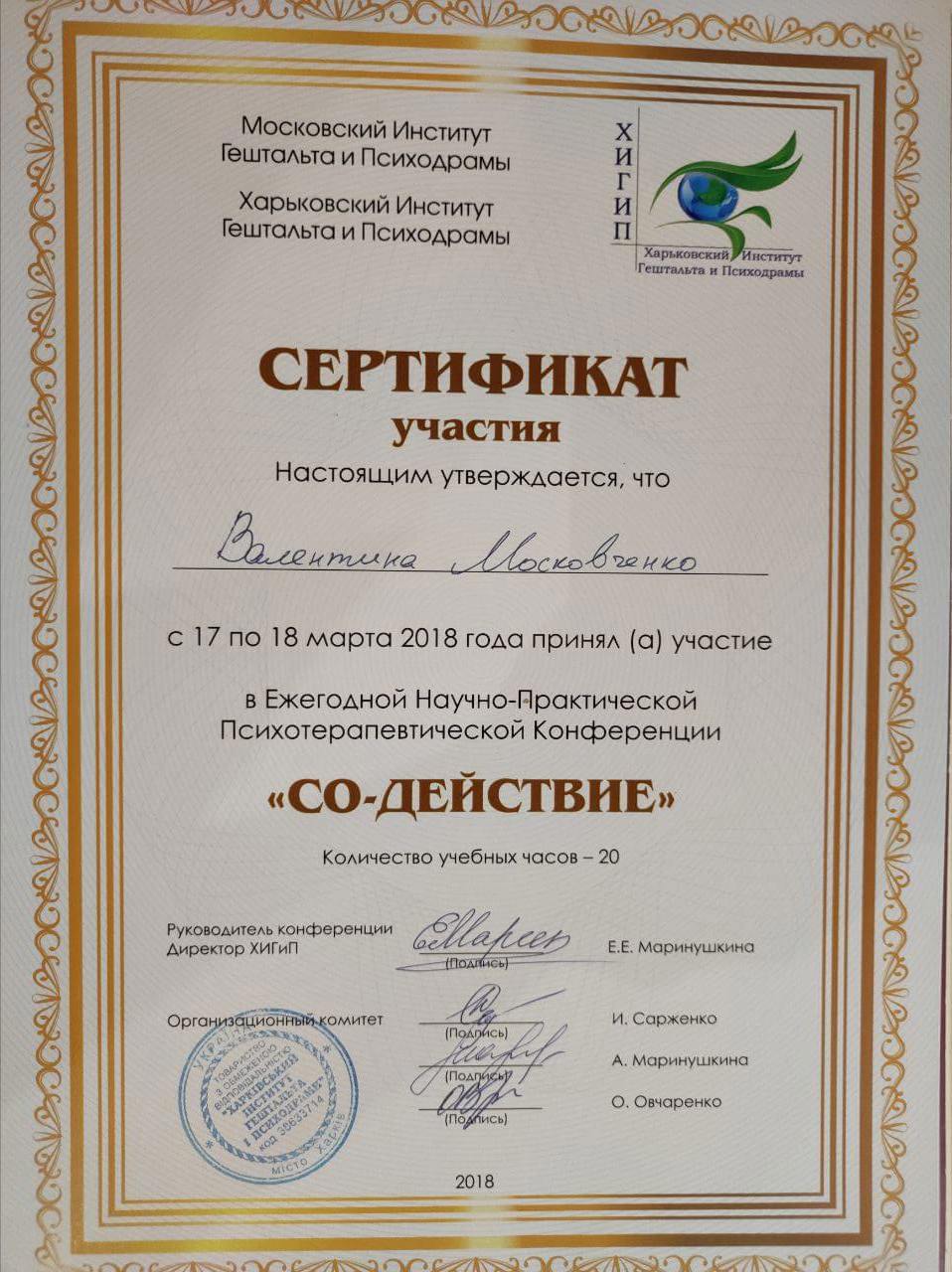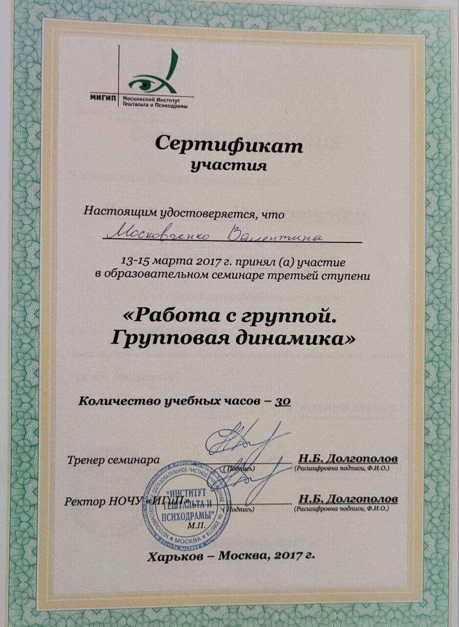 Психодрама терапевт (МИГИП) 980 часов 2013 год сертификации.