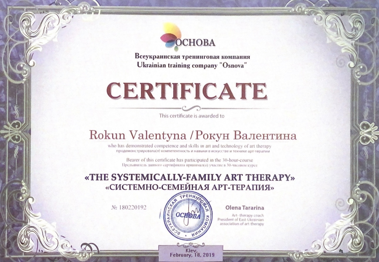 Сертификаты по семейной положительной психотерапии