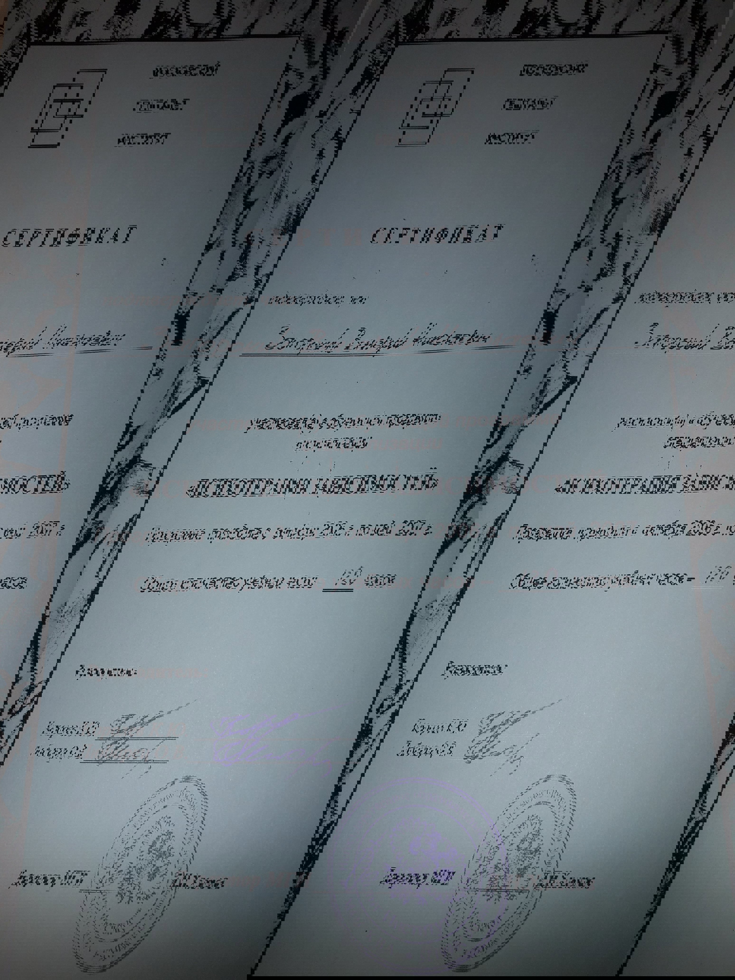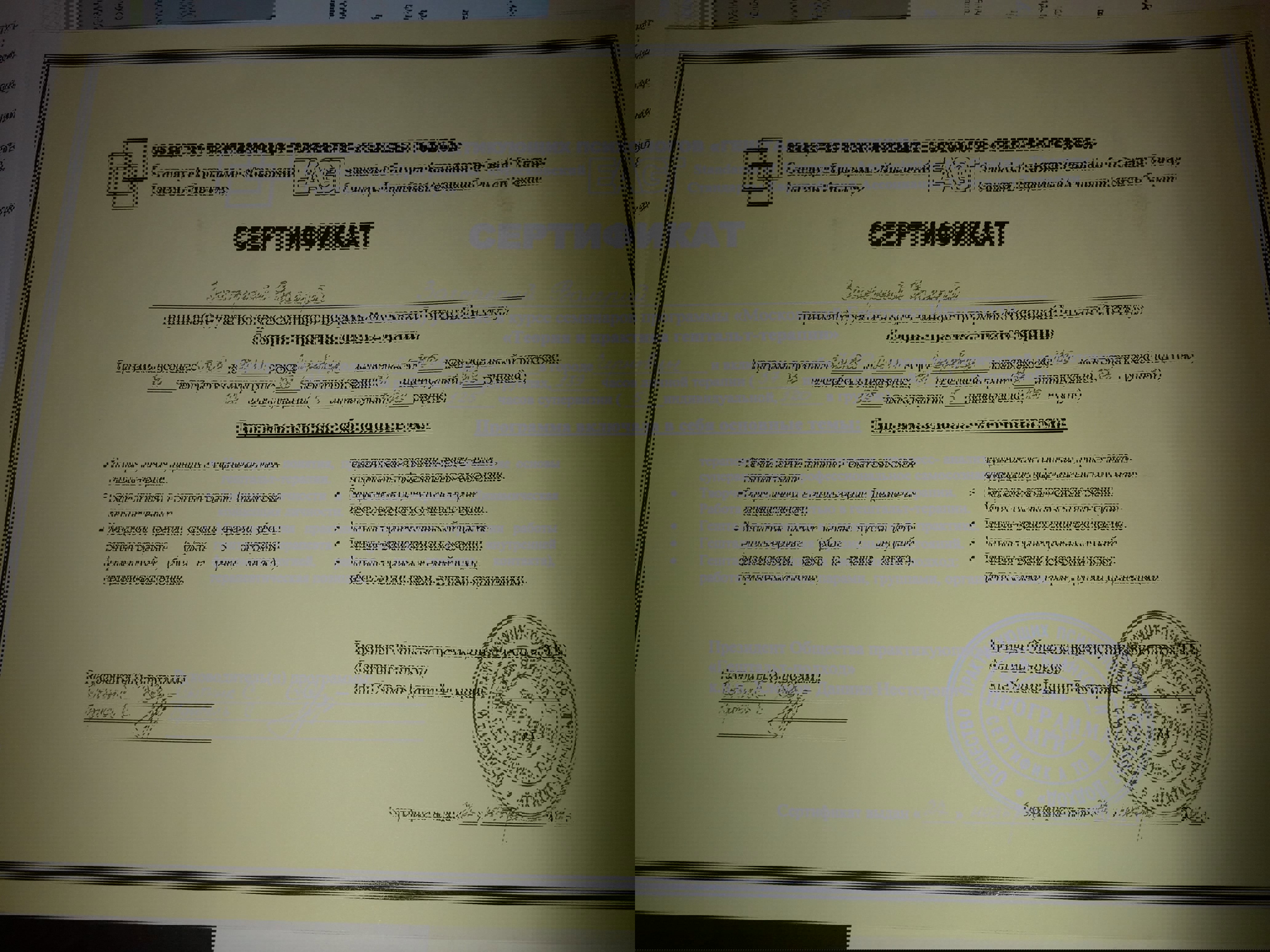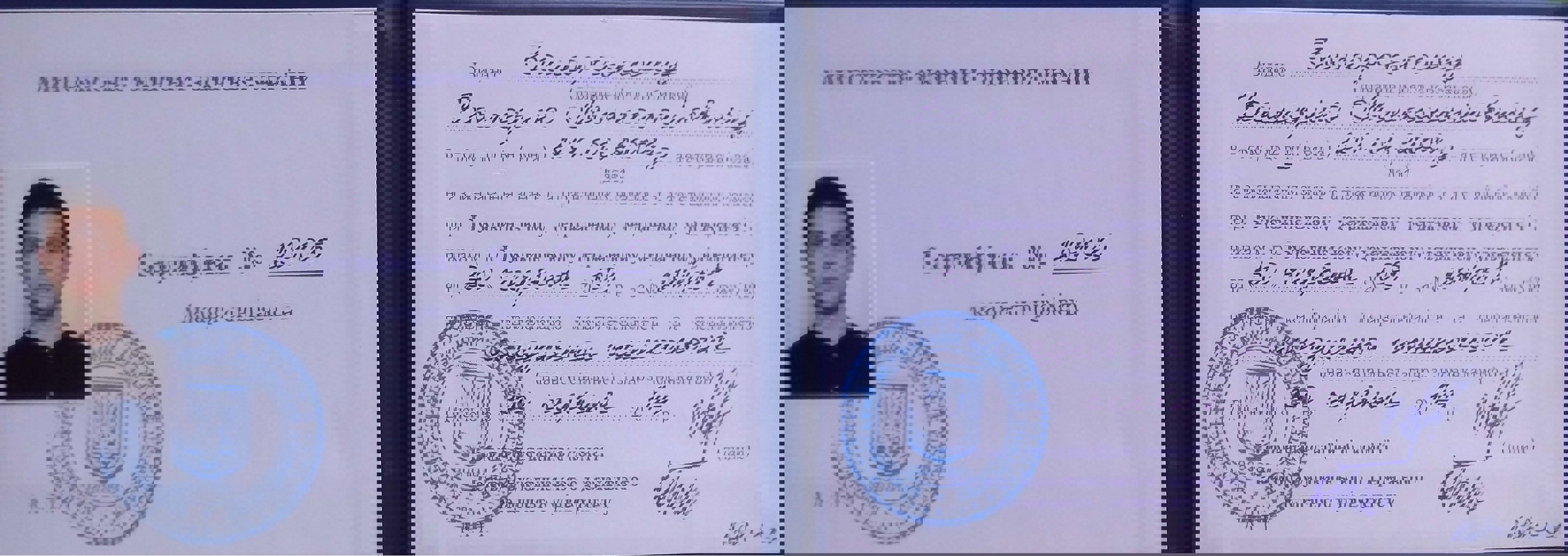 Сертификаты:
