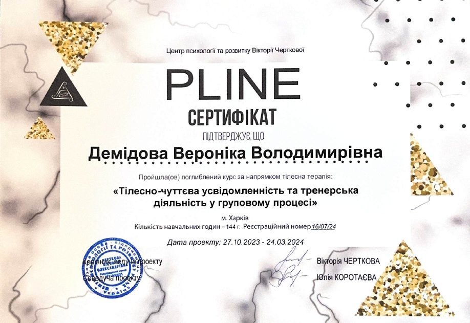 Меня зовут Вероника Демидова. Мне сорок четыре года. Я работаю в подходе к телесно-ориентированной терапии и арт-терапии.