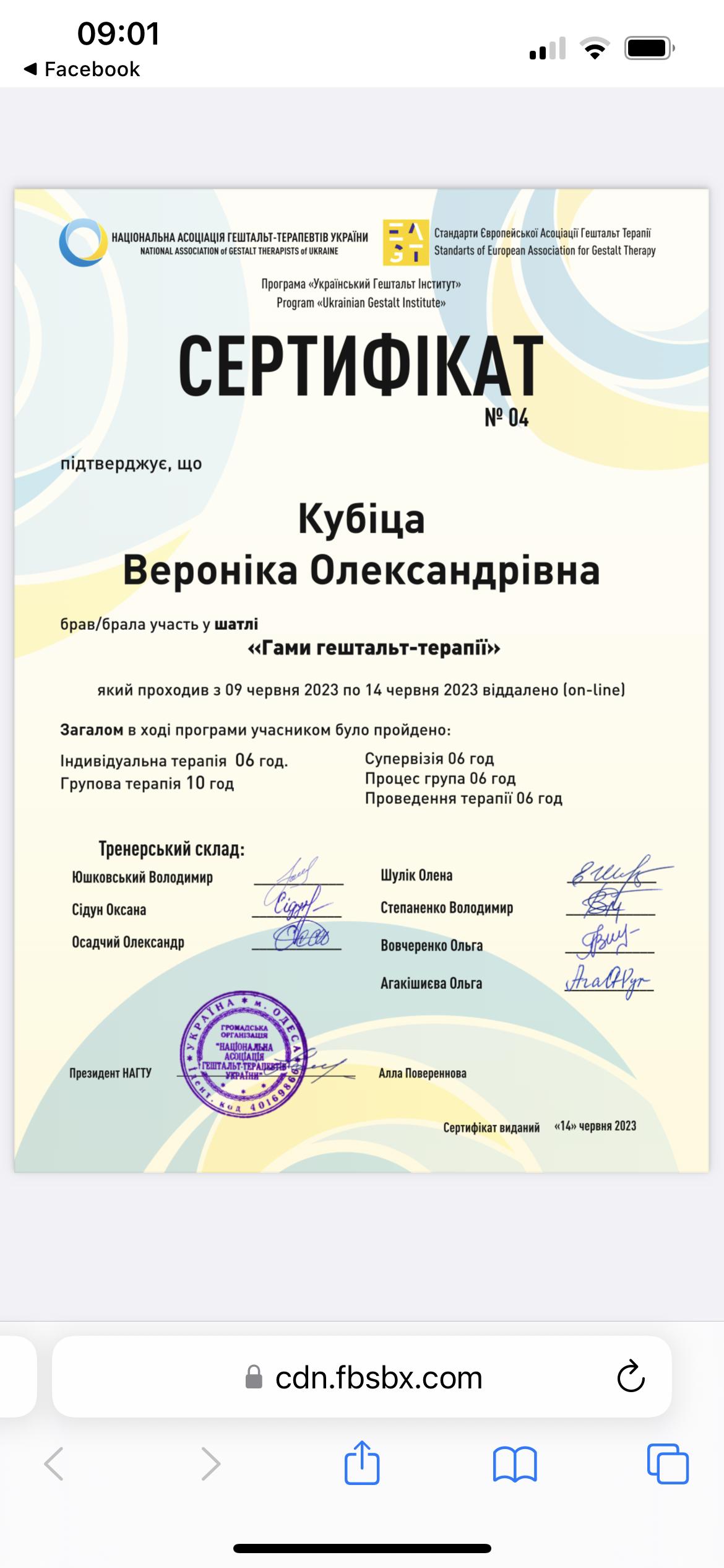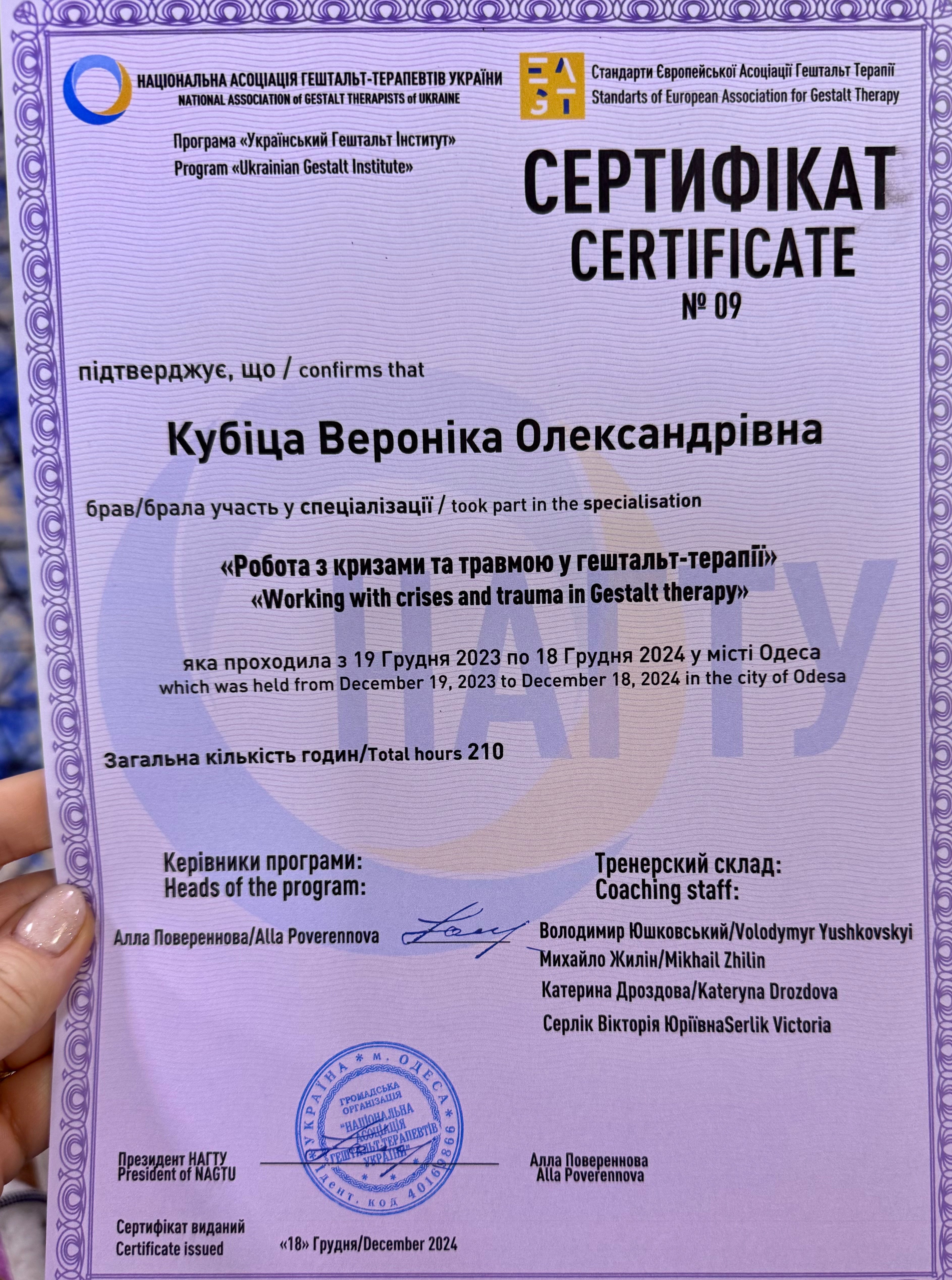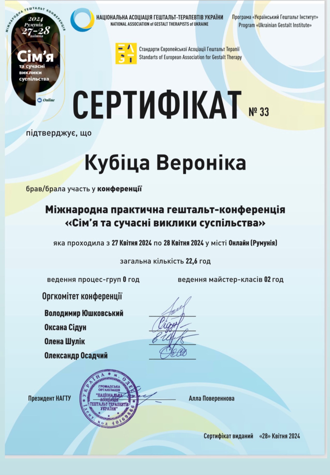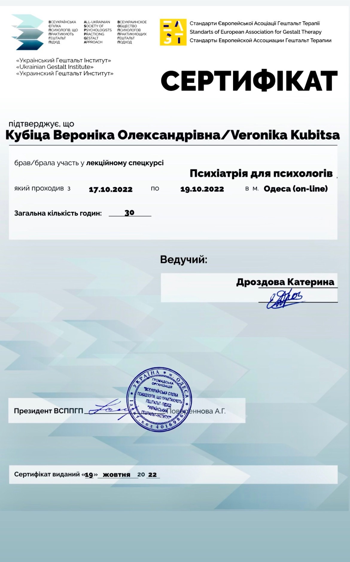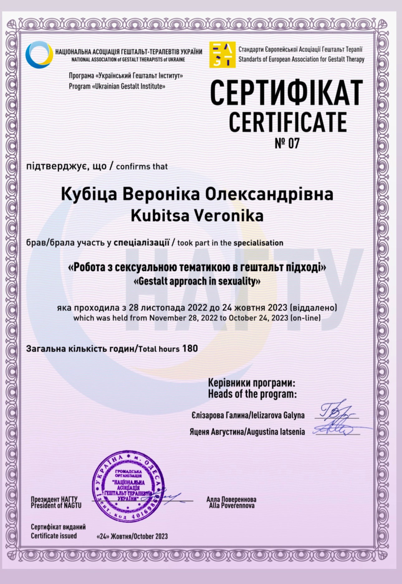 Украинский Гештальт институт с 2018 года - наст время. Студент 2 ступени