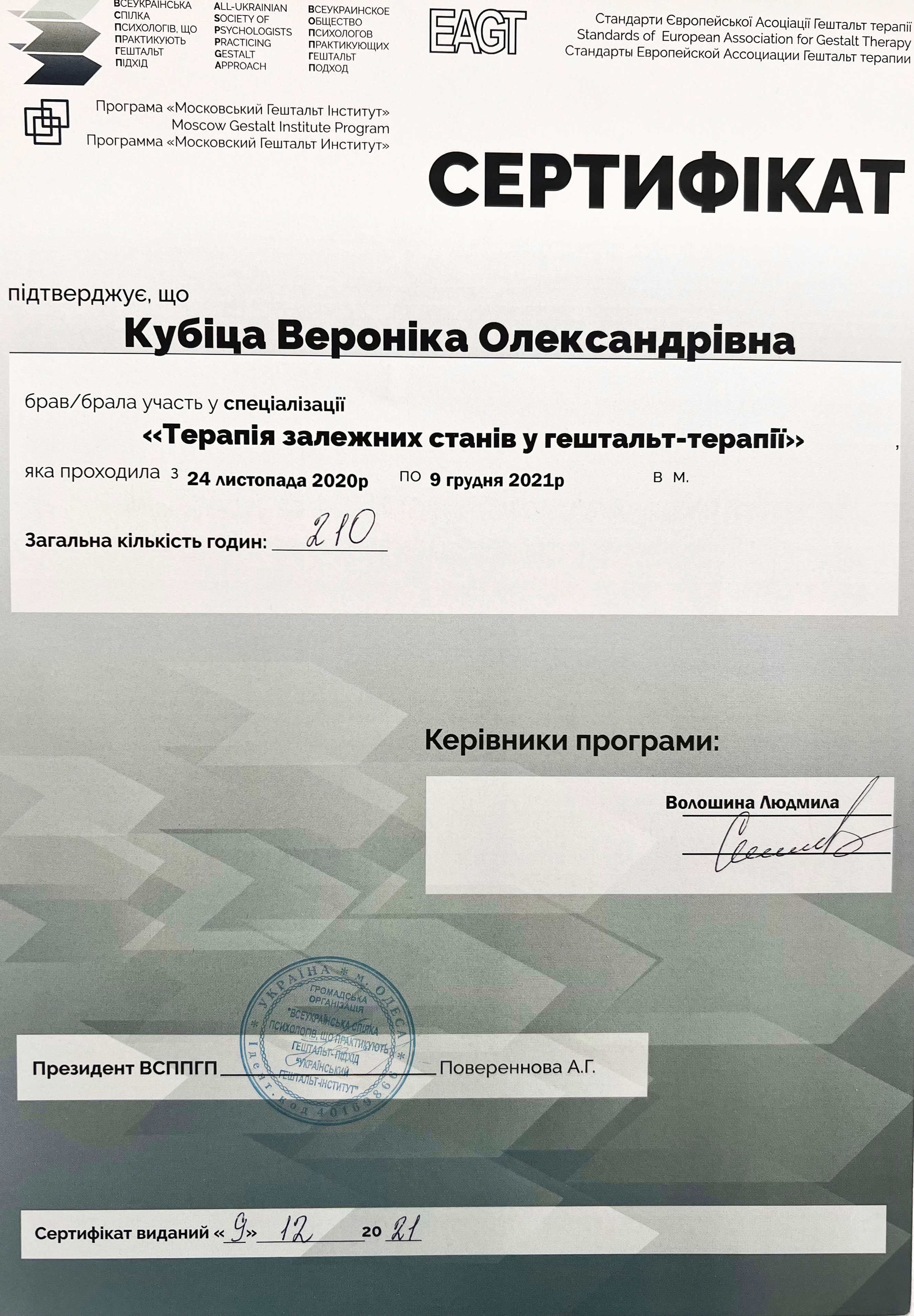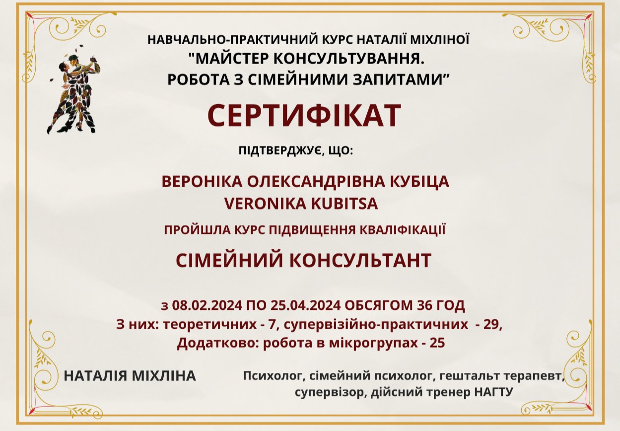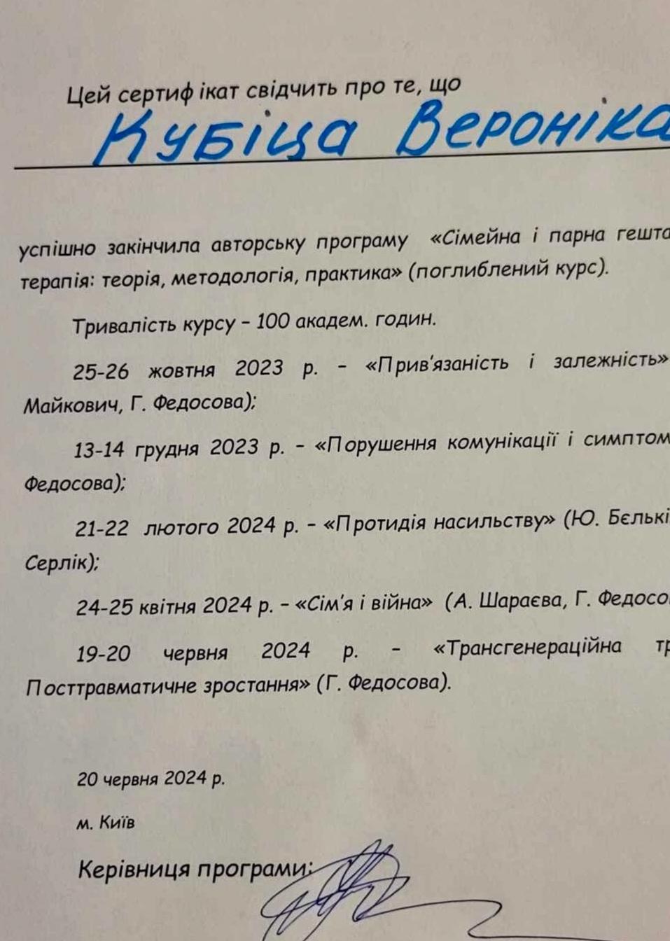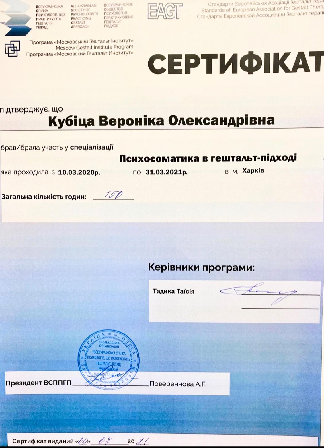 Украинский Гештальт институт с 2018 года - наст время. Студент 2 ступени