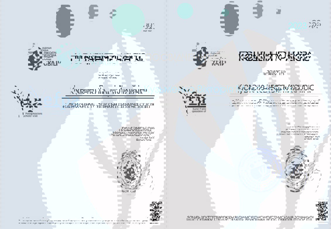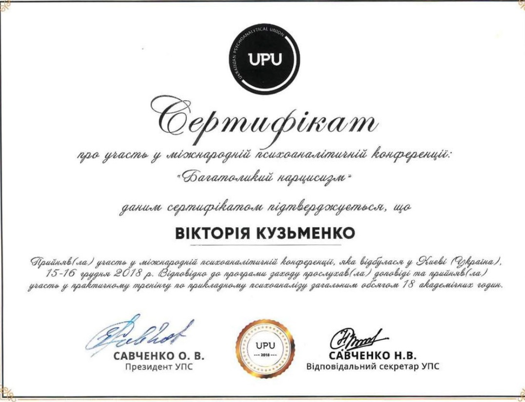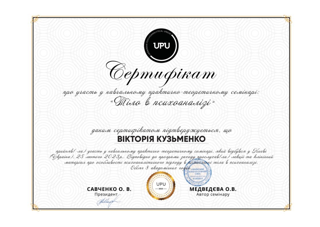 ✅ В 2023 году участник во Всеукраинской конференции с международным участием «Психоанализ на времени»;
