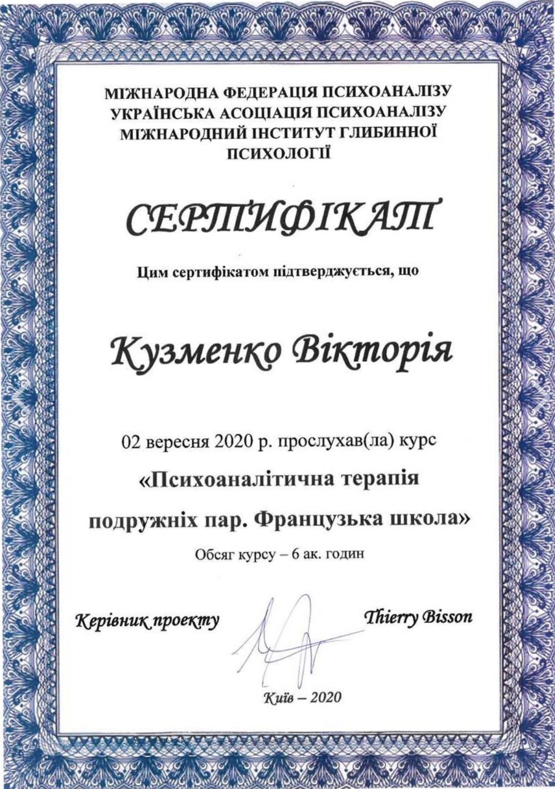 ✅В 2020 году прошла курс «Психоаналитическая терапия супружеских пар. Французская школа».