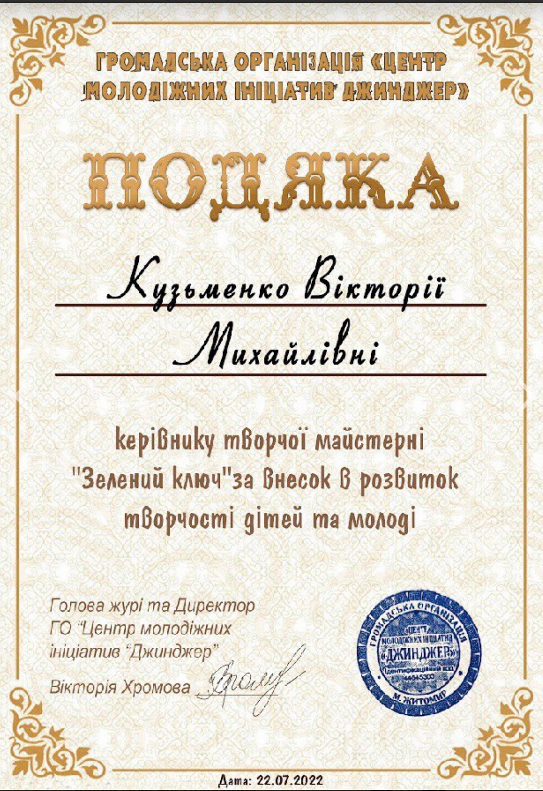 ✅ 2016-2020 гг. волонтер с авторским проектом творческая мастерская «Зеленый ключ» в специализированной школе І-ІІІ степеней с углубленным изучением английского языка #85 г.Киева, благодаря чему в свет вышли книги: «Фантазийка», «Мир глазами ребенка»;