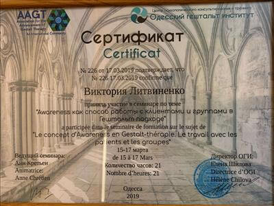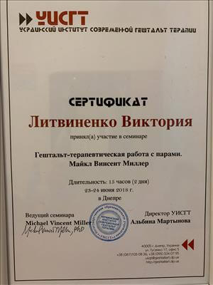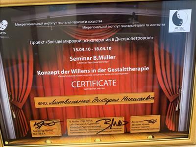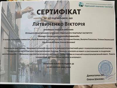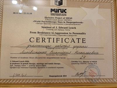 Институт экономики и права Альфреда Нобеля по специальности магистр психологии, Московский Институт Гештальт терапии и Консультирования, Французский Институт Гештальт терапии, специализация по психопатологии,