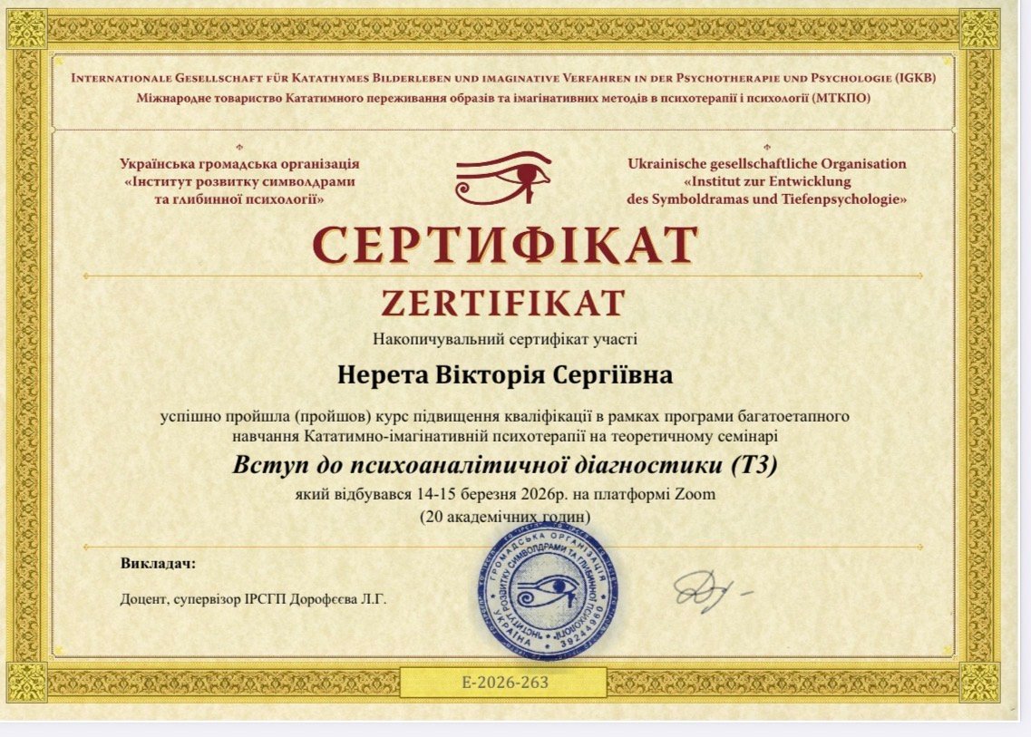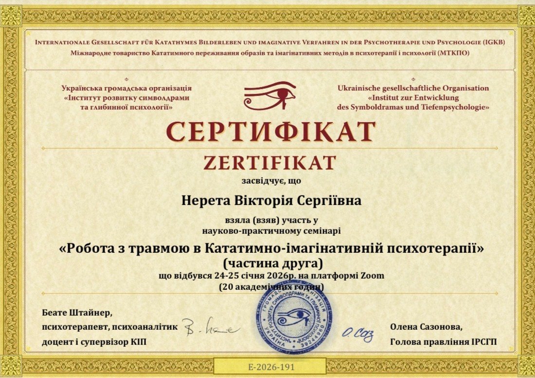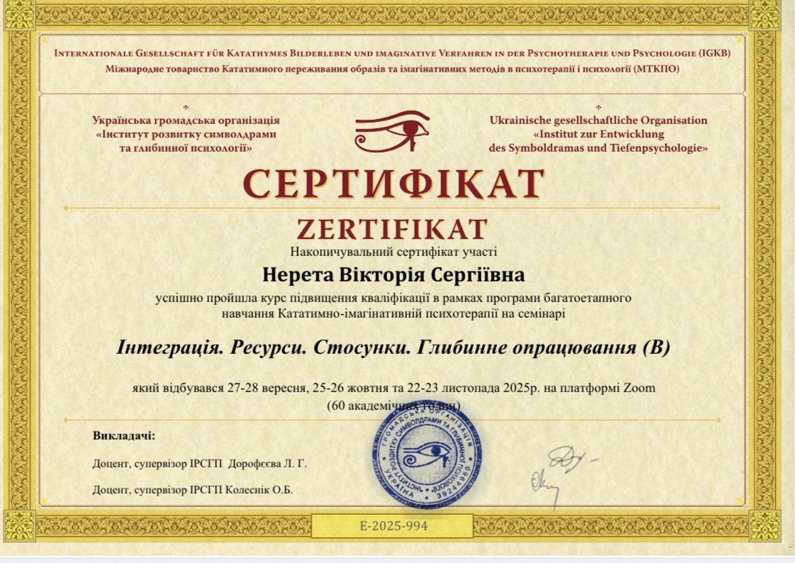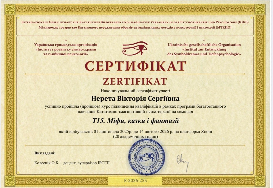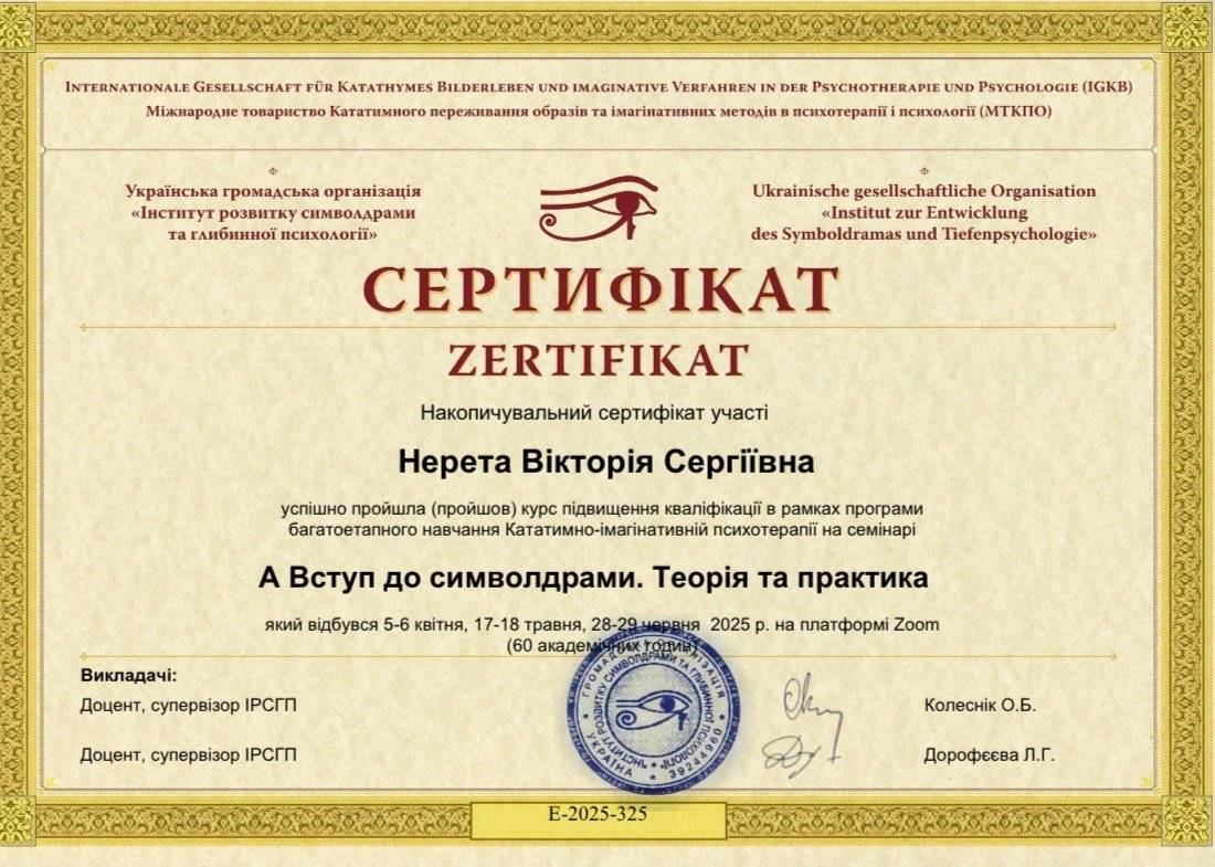 Я – психолог по методу символдрамы. Этот метод, разработанный на основе психоанализа и юнгианской психологии, является системным, хорошо изученным и эффективным в лечении неврозов, депрессий, страхов, а также в семейных и детских проблемах. Символдрама помогает понять себя и свои проблемы через воображаемые образы, позволяя увидеть бессознательные конфликты, желания и страхи даже на символическом уровне.