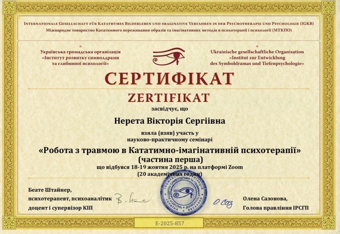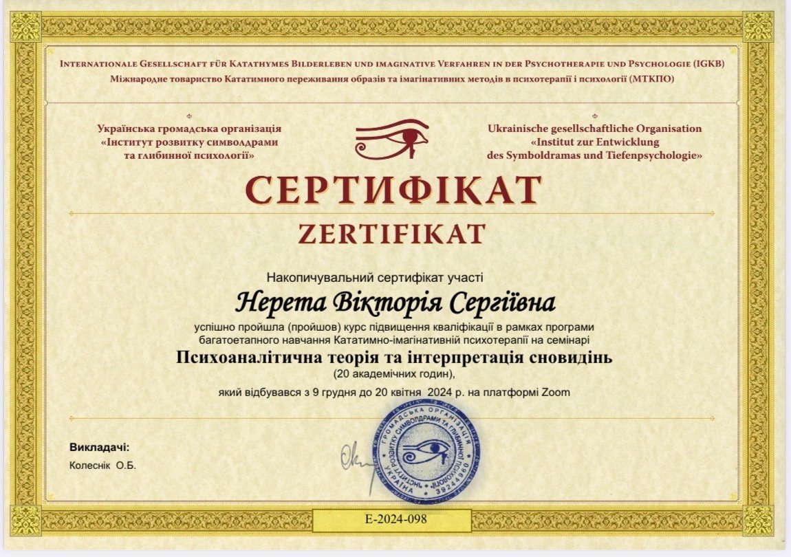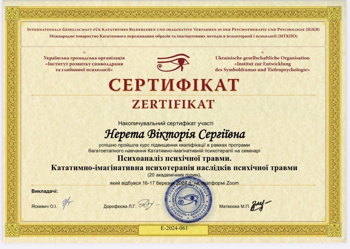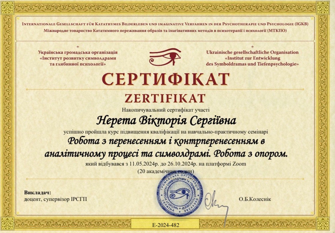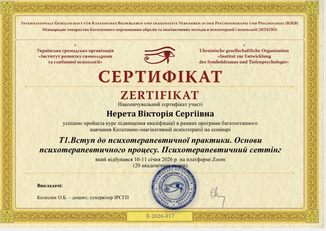Я – психолог по методу символдрамы. Этот метод, разработанный на основе психоанализа и юнгианской психологии, является системным, хорошо изученным и эффективным в лечении неврозов, депрессий, страхов, а также в семейных и детских проблемах. Символдрама помогает понять себя и свои проблемы через воображаемые образы, позволяя увидеть бессознательные конфликты, желания и страхи даже на символическом уровне.