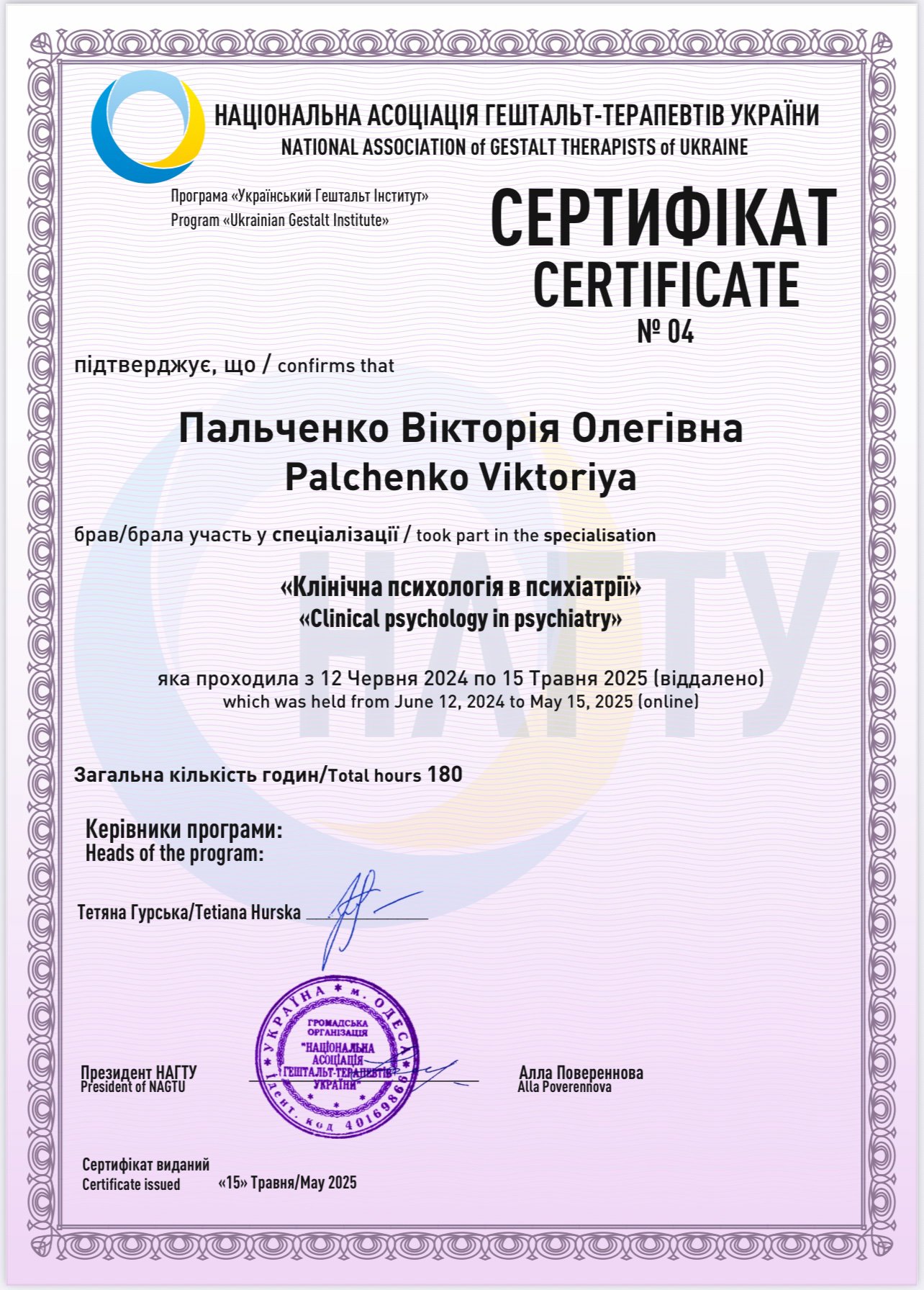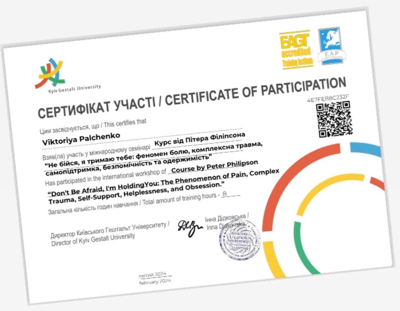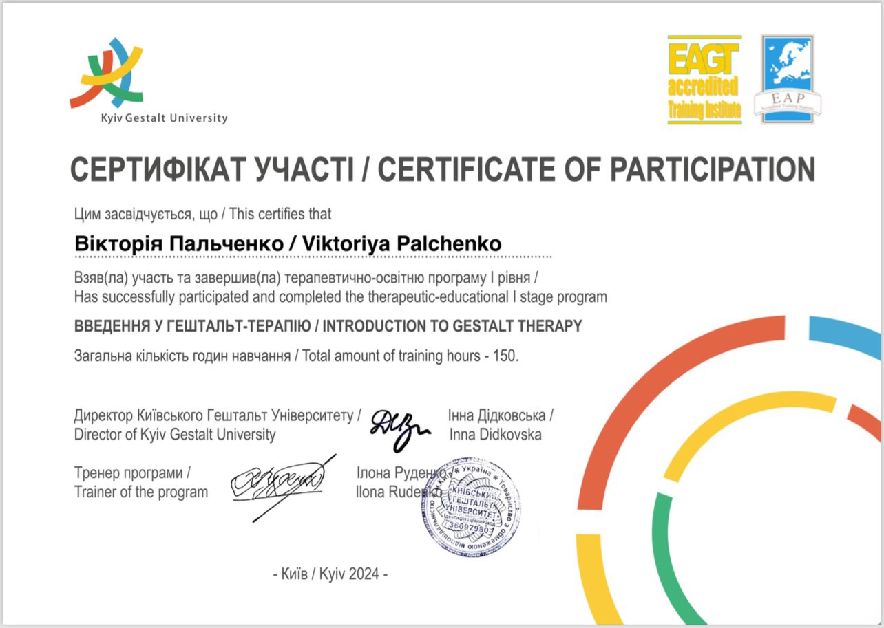 В своей работе я совмещаю гештальт-терапию, работу с эмоциями и телесной осознанностью. Много внимания уделяю тому, как опыт сохраняется в теле, как формируется реакция на опасность и как постепенно восстанавливается чувство безопасности и опоры.