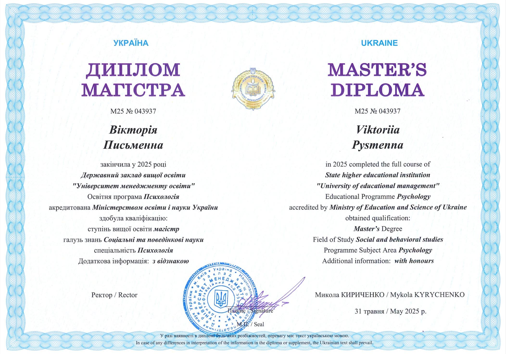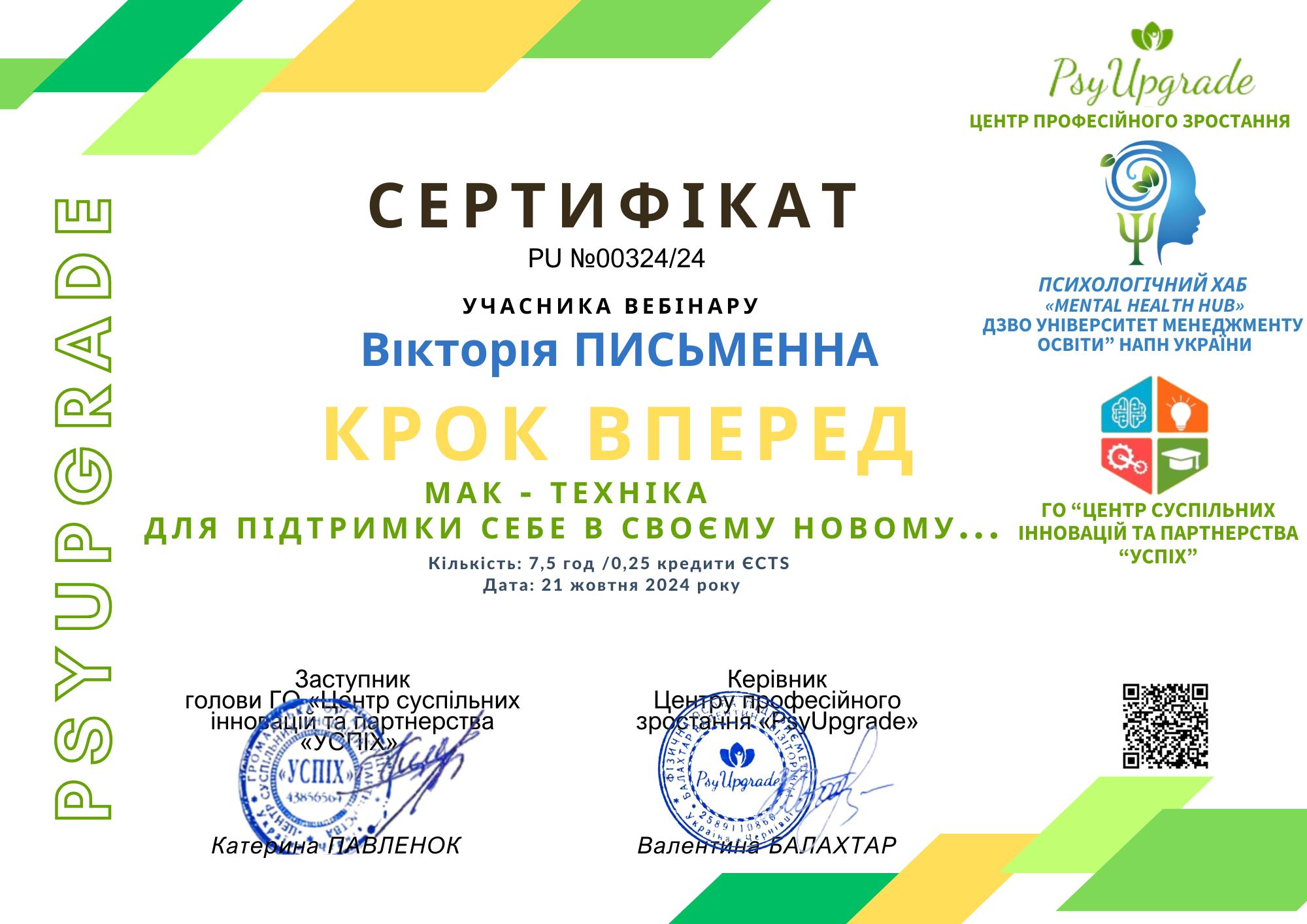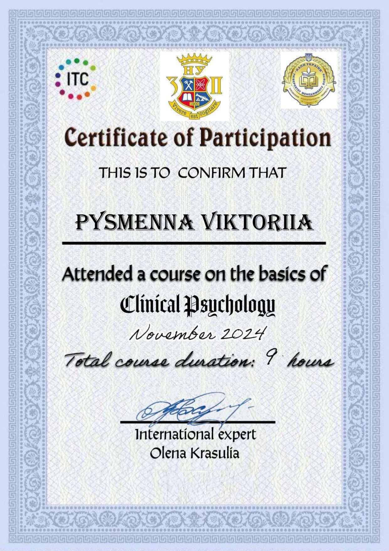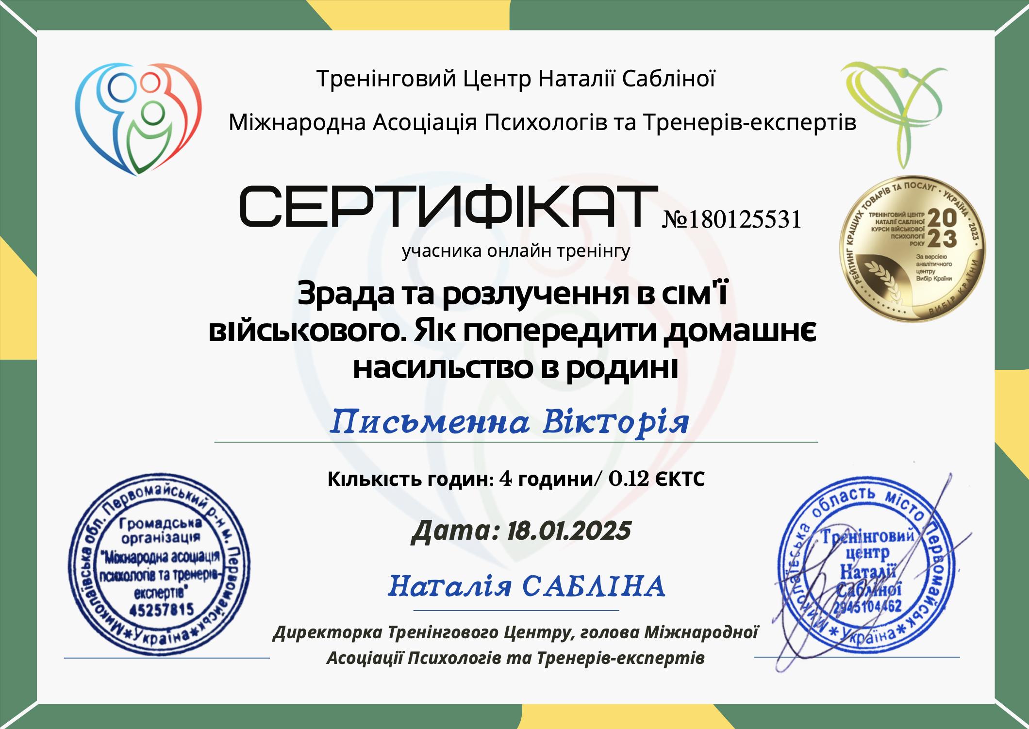 1) Украинский институт когнитивно-поведенческой терапии, программа КПТ+ (в обучении)