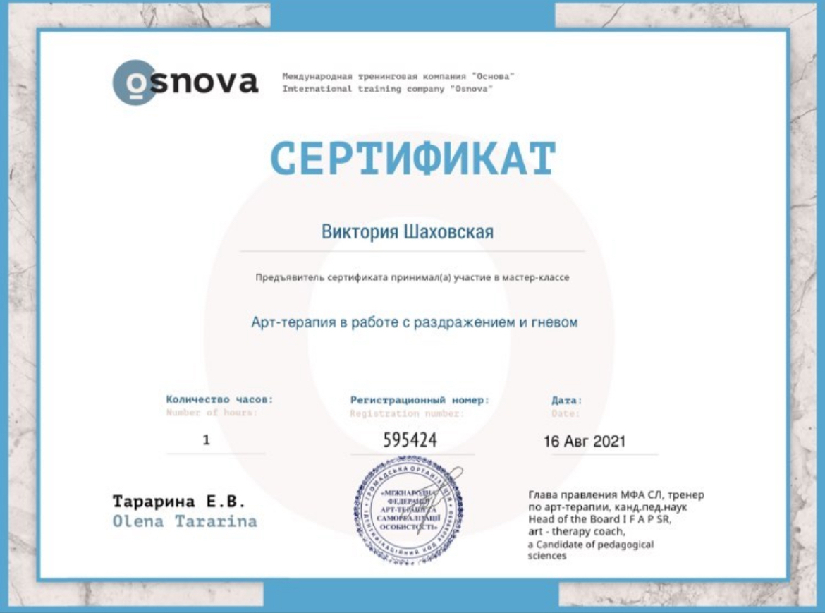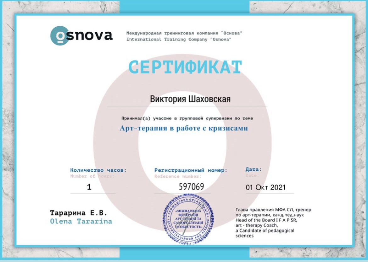 2022г. – Международная тренинговая компания «Основа». Работа с ПТСР в условиях военного времени. 46 ок.год