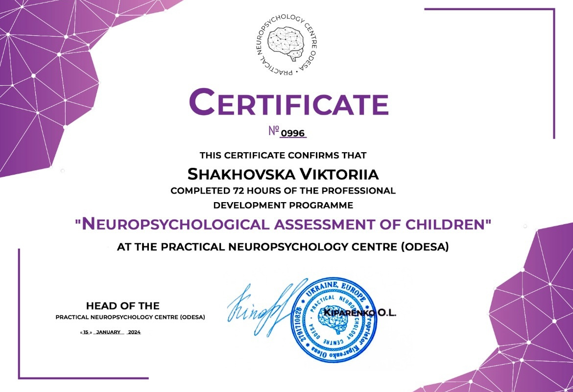 2023г. – Украинский союз психотерапевтов. Невротические нарушения у детей и подростков в работе детского психолога. 40 ок.год
