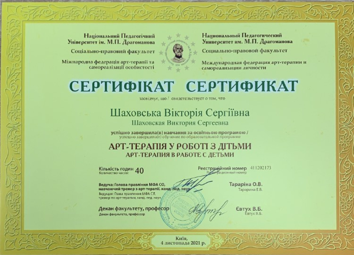2021г. Национальный педагогический университет им. Драгоманова. Арт-терапия в работе с детками. 40 ок.год