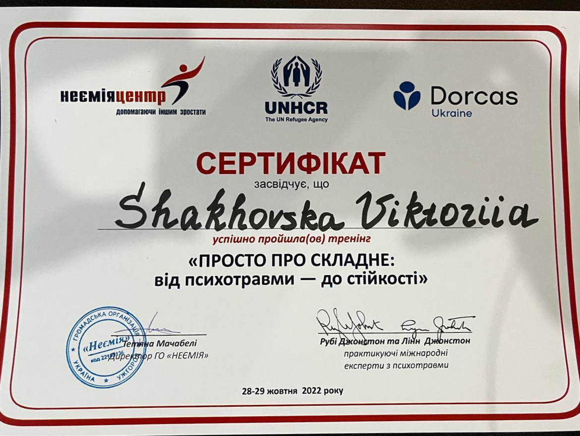 2022 – Украинский союз психотерапевтов. 7 Львовский образовательный проект.