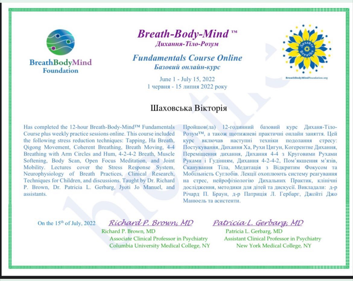 2022г. - Breath Body Mind Foundation. Базовый курс Дыхание-Тело-Ум. 12 ок.год