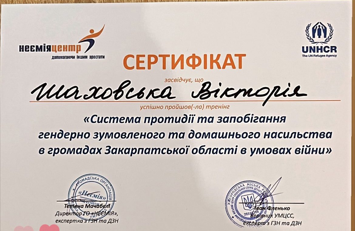 Член Украинского союза психотерапевтов, член секции детской и юношеской психотерапии в Закарпатской области.