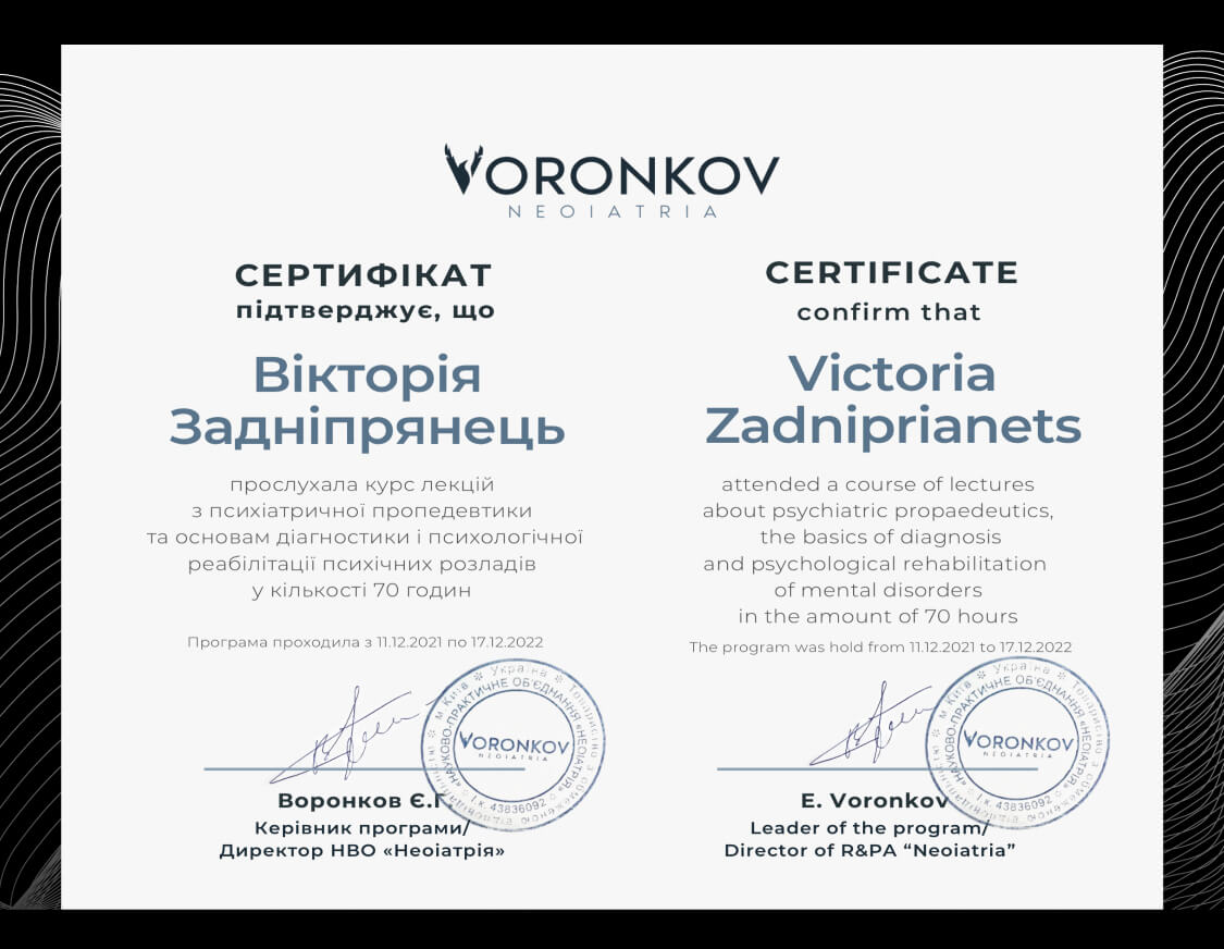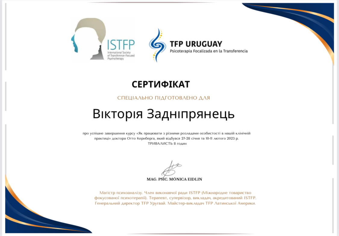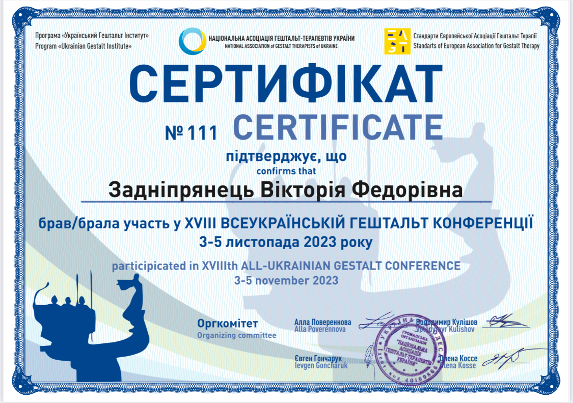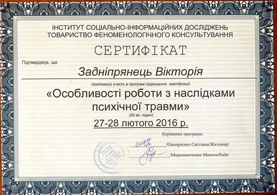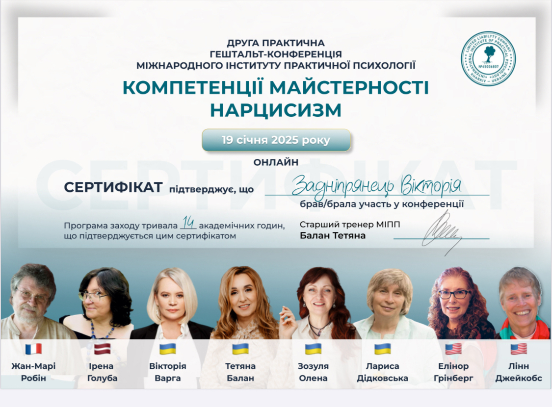 27 лет личной и групповой терапии. Теперь Живу Свою Жизнь, которая стала более качественной. Психотерапия помогла мне реализовывать мои мечты. Теперь я знаю, как помочь моим клиентам в темах, которые я уже проработала в собственной психотерапии.