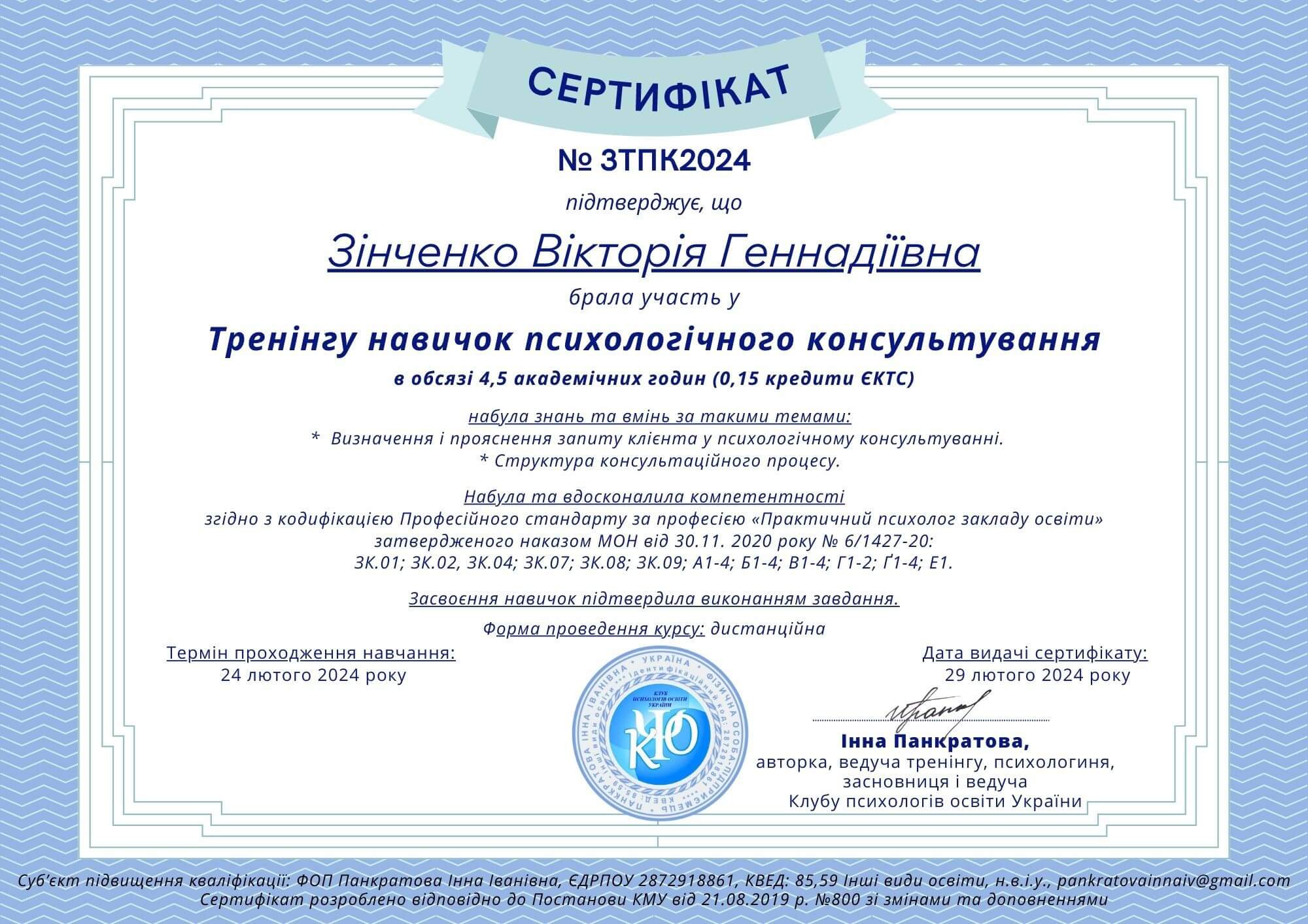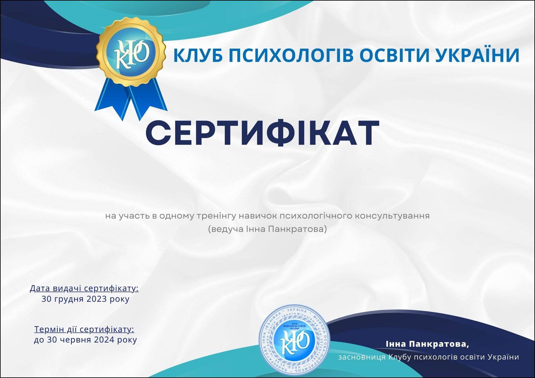 Клуб психологів освіти України (авторка і ведуча тренінгу Інна Панкратова)