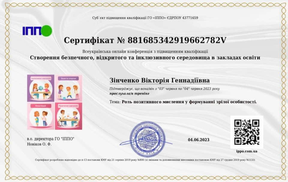 Всеукраїнська онлайн конференція з підвищенням кваліфікації Створення безпечного, відкритого та інклюзивного середовища в закладах освіти