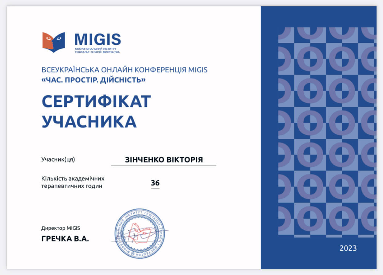 • Институт MIGIS. (1 степень гештальт-терапии)