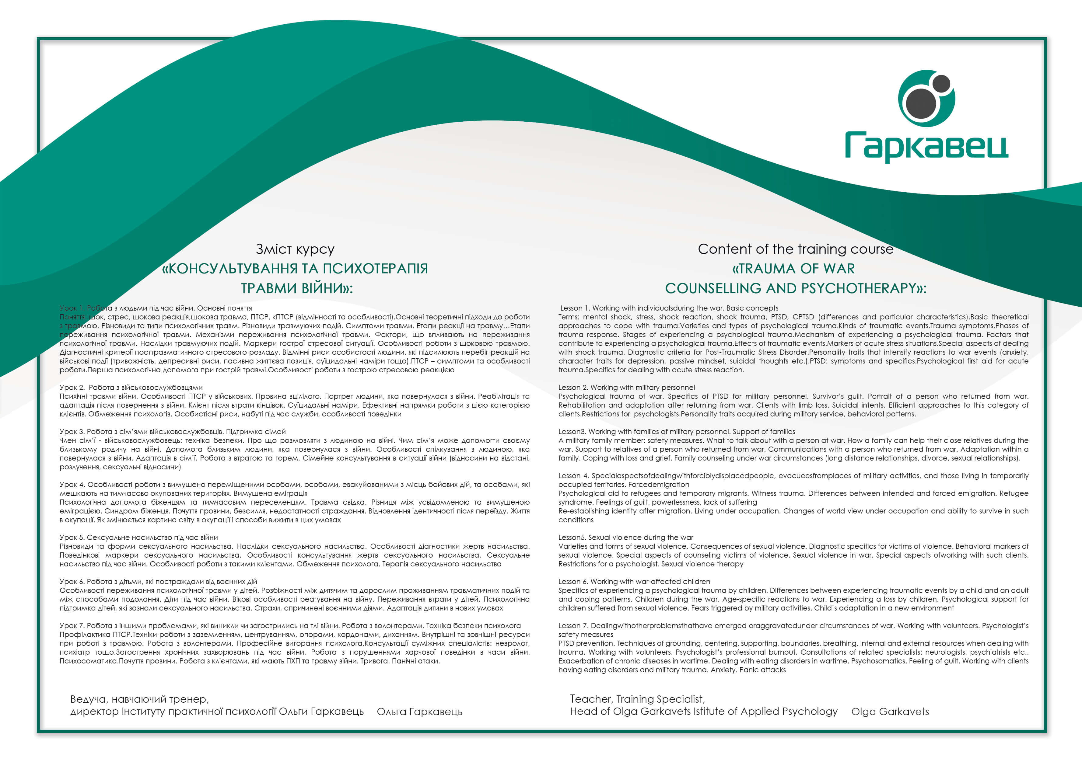 КОНСУЛЬТУВАННЯ ТА ПСИХОТЕРАПІЯ ТРАВМИ ВІЙНИ