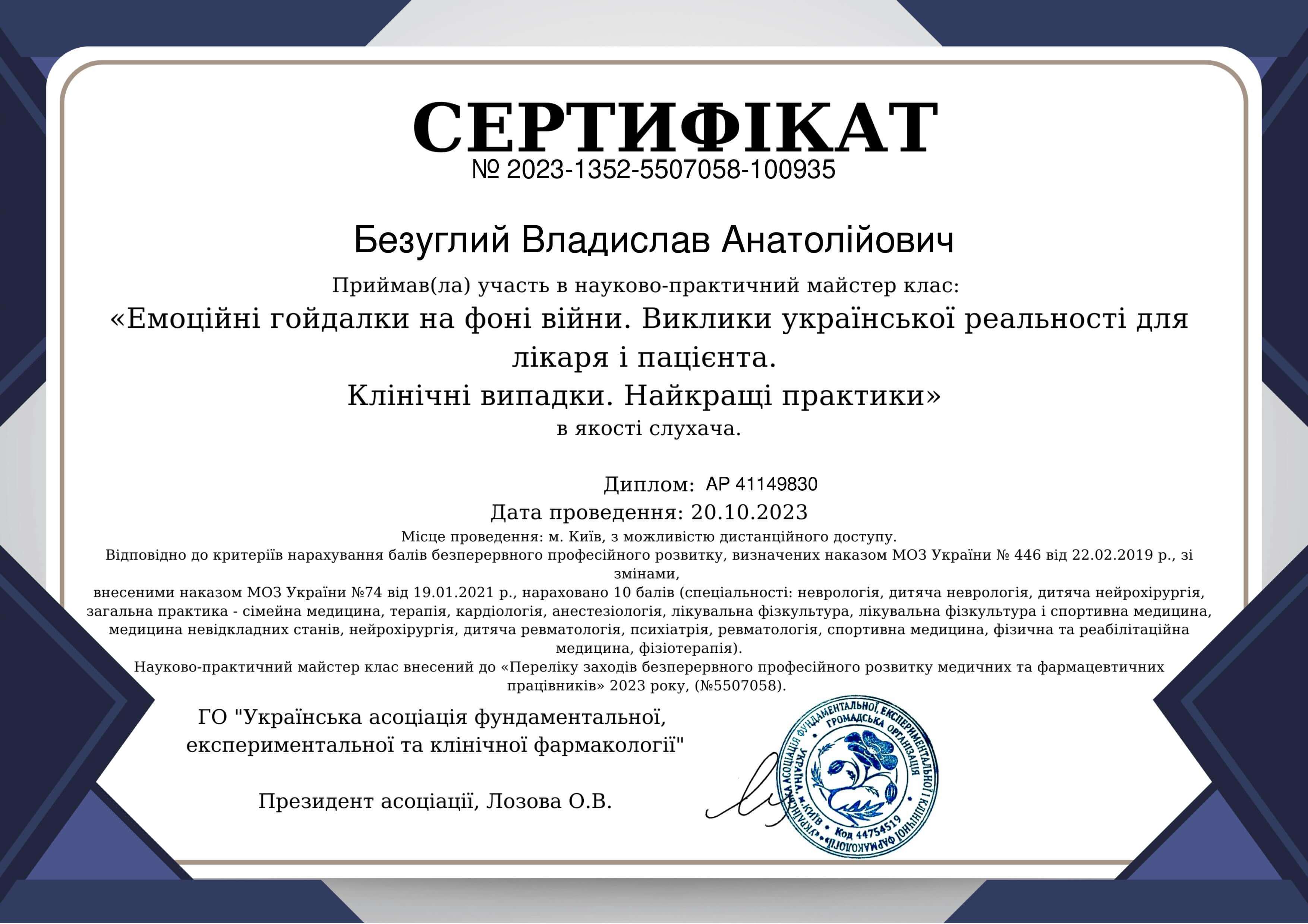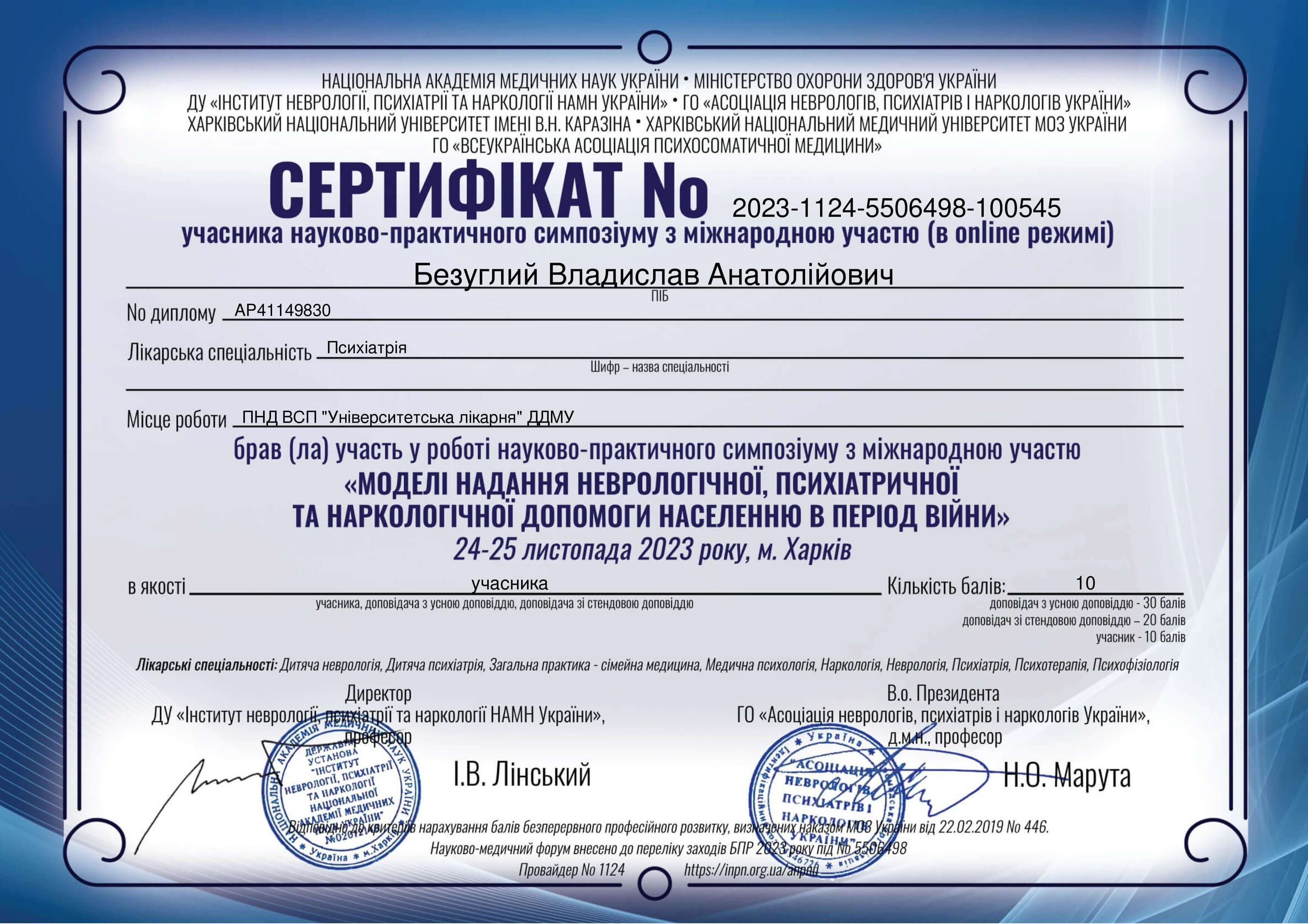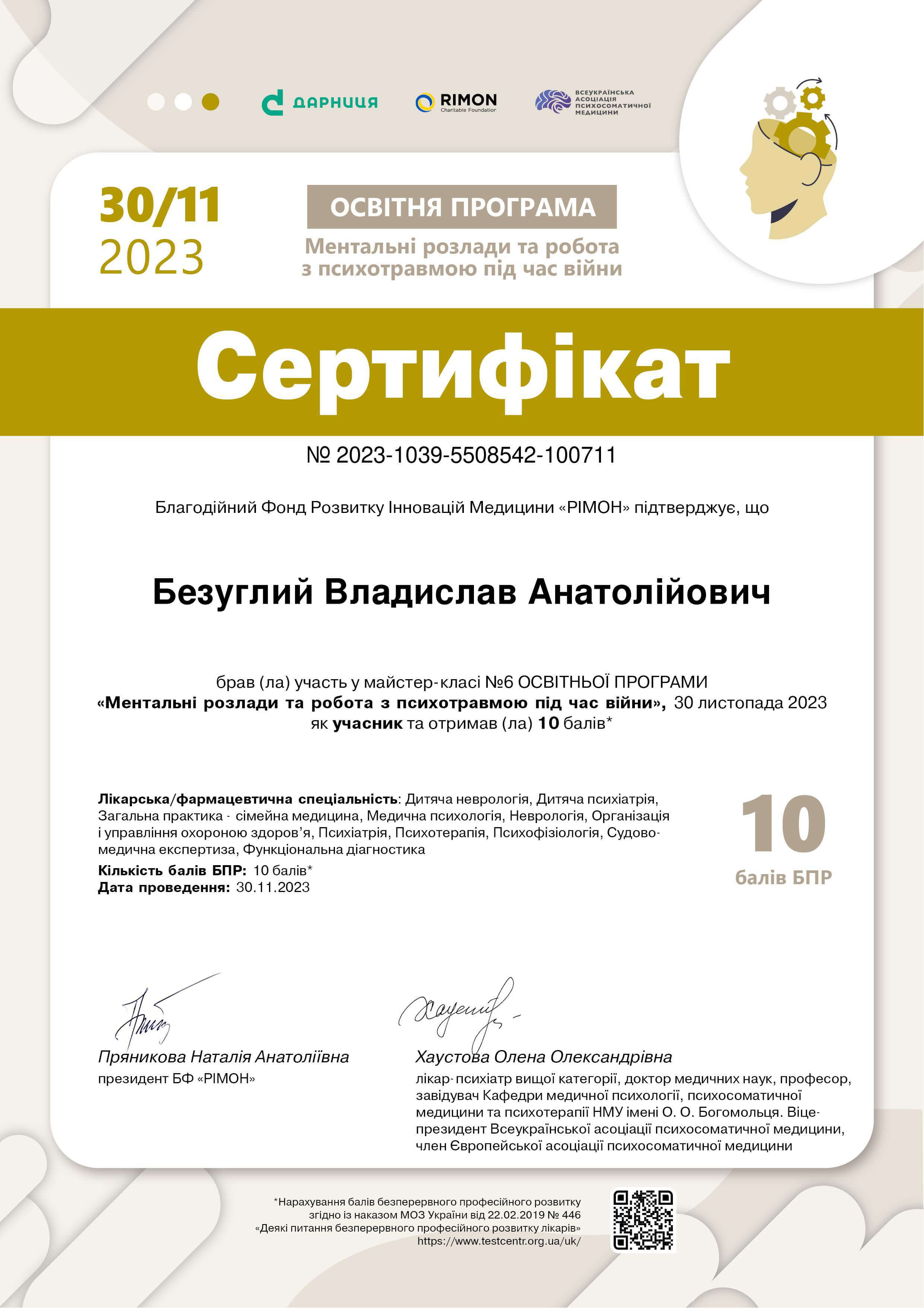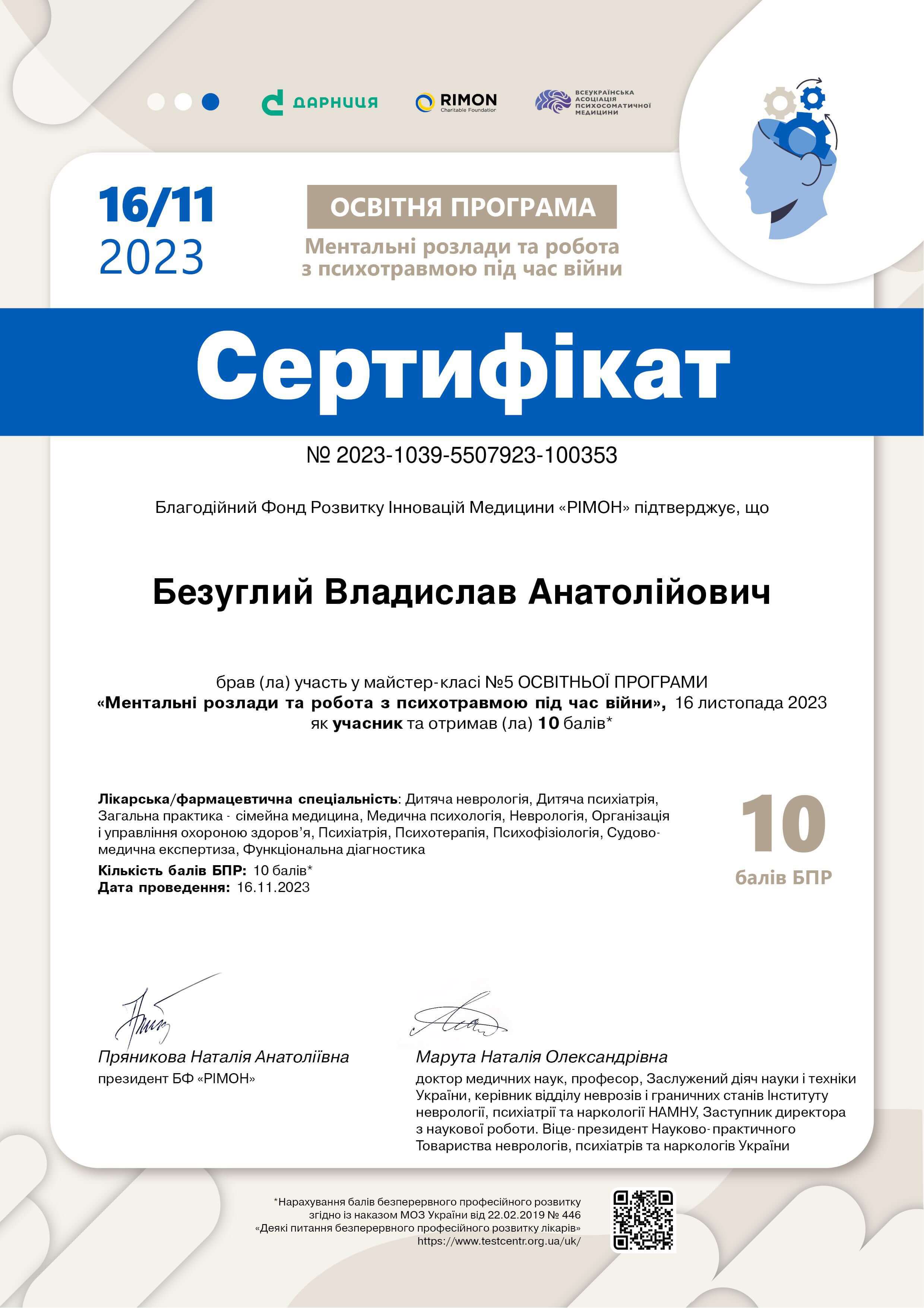 Базовое образование: высшее медицинское – окончил ЗГМФУ, г. Запорожье. Специальность – психиатрия, сейчас практикую. Учусь гештальт-психотерапии в НАГТУ, завершаю вторую степень