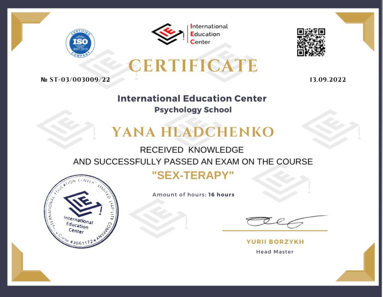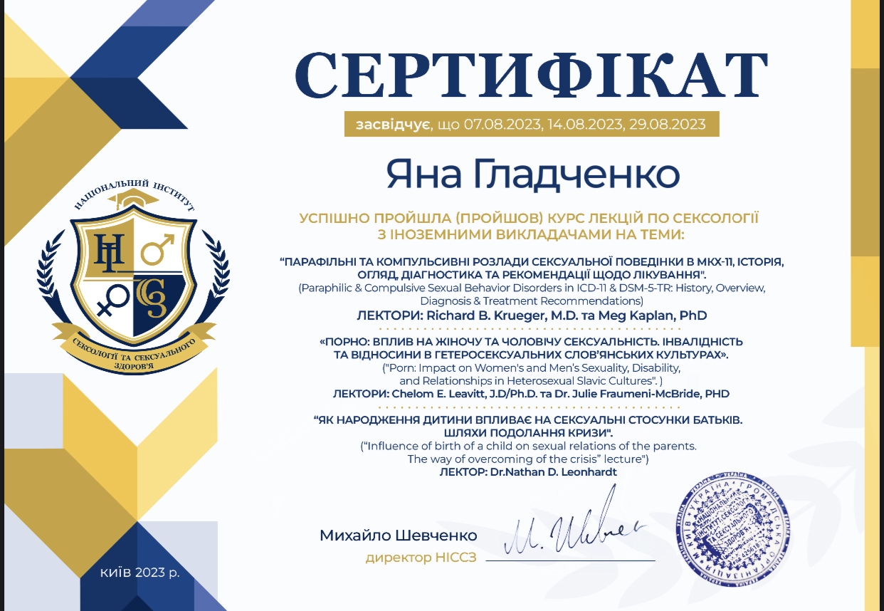 Сексолог International Еducation center Expert, Киев ноябрь 2021 – март 2022
