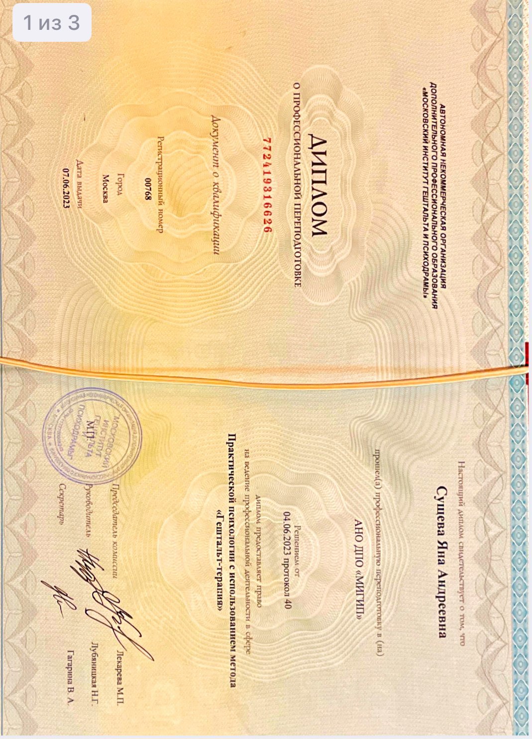АНО "МИГИП" Практическая психология с использованием метода гештальт терапии