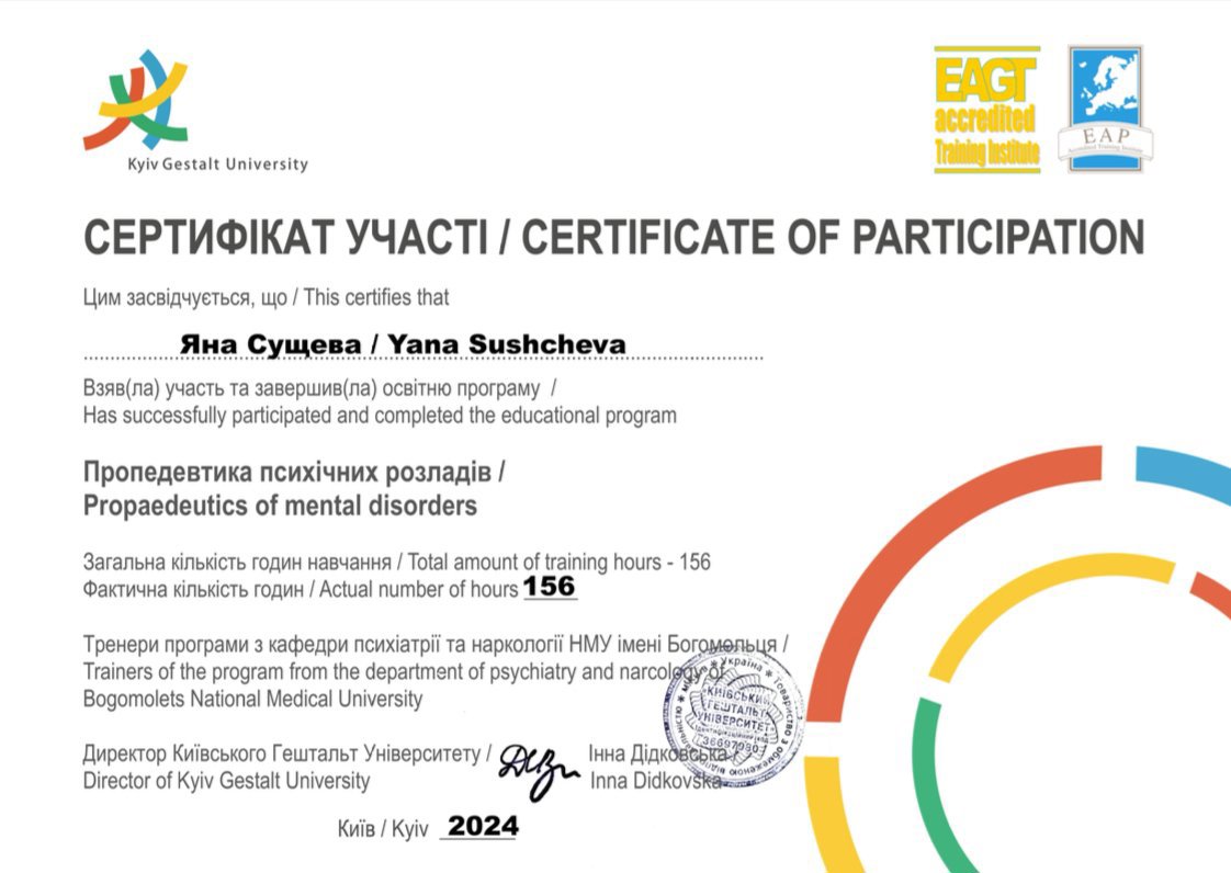 Киевский гештальт университет Пропедевтика психических расстройств (годовая программа)