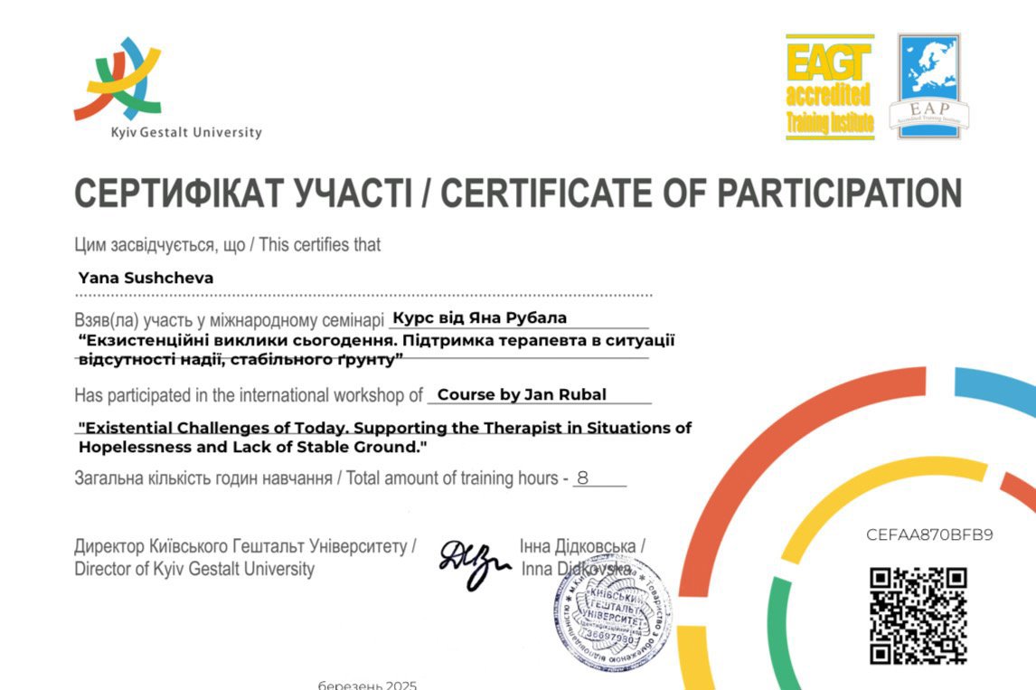 Если вы здесь и читаете это, значит, вы нуждаетесь в поддержке, помощи специалиста и хотите что-то изменить в своей жизни. Я здесь и готова вам помочь тактично и профессионально. Вместе мы шаг за шагом пройдем этот путь.