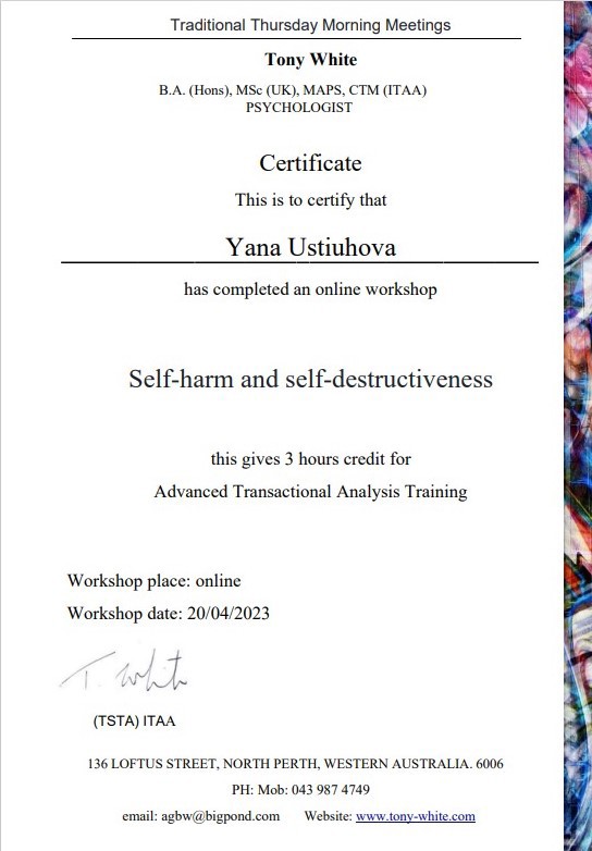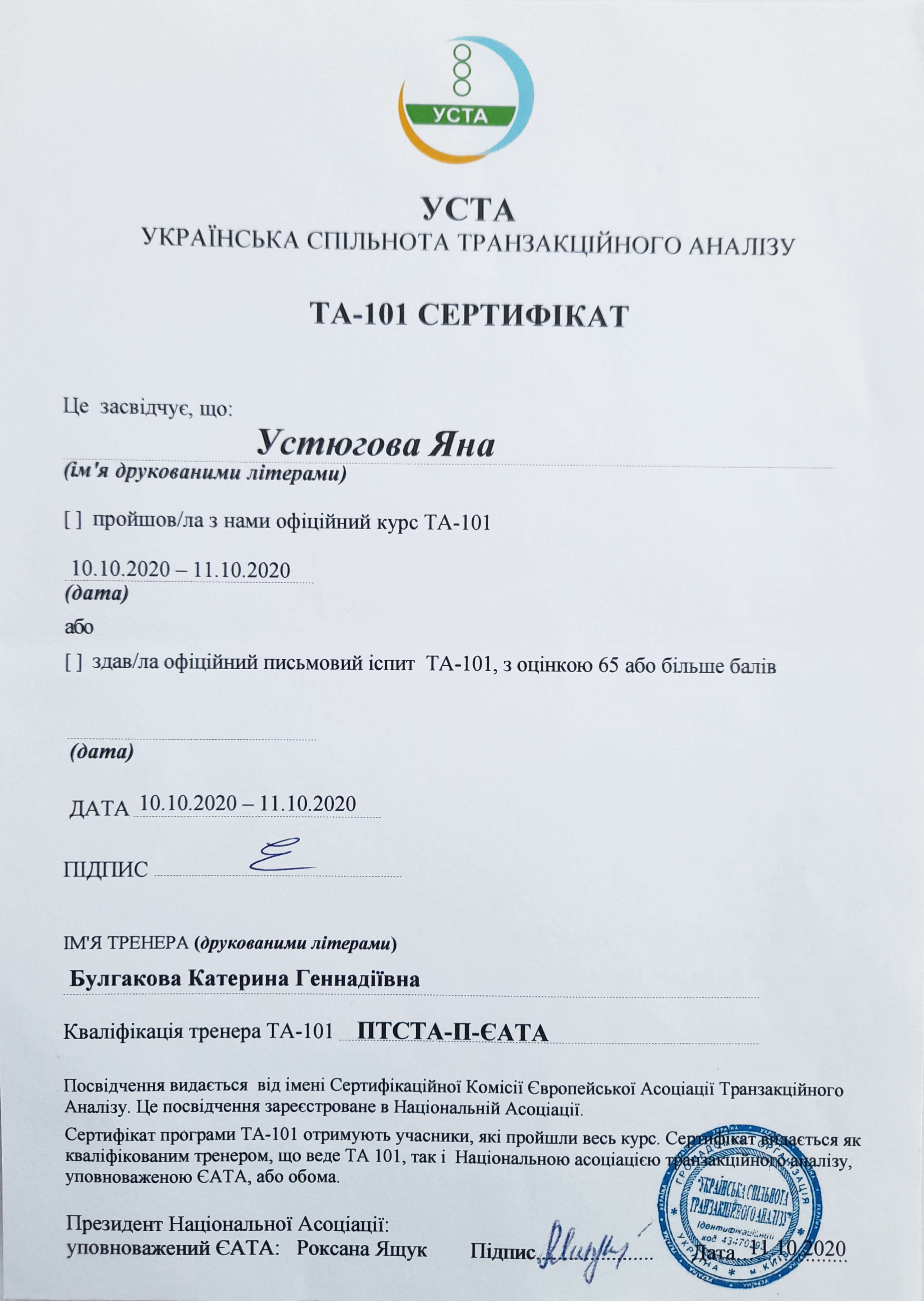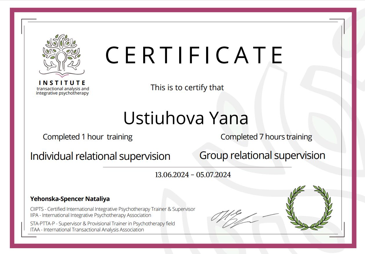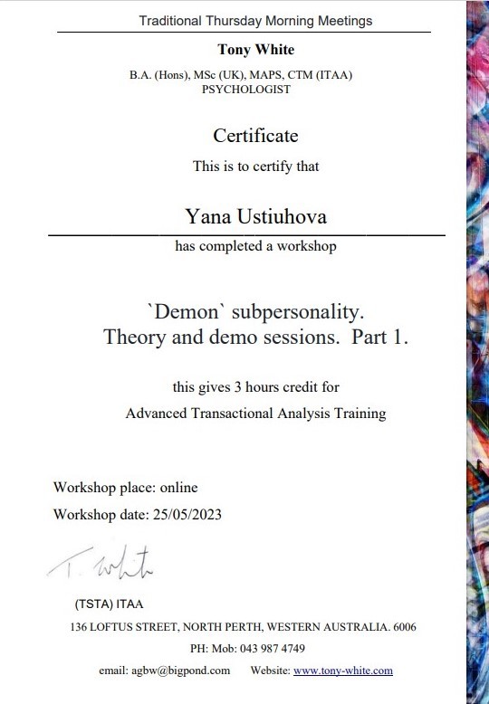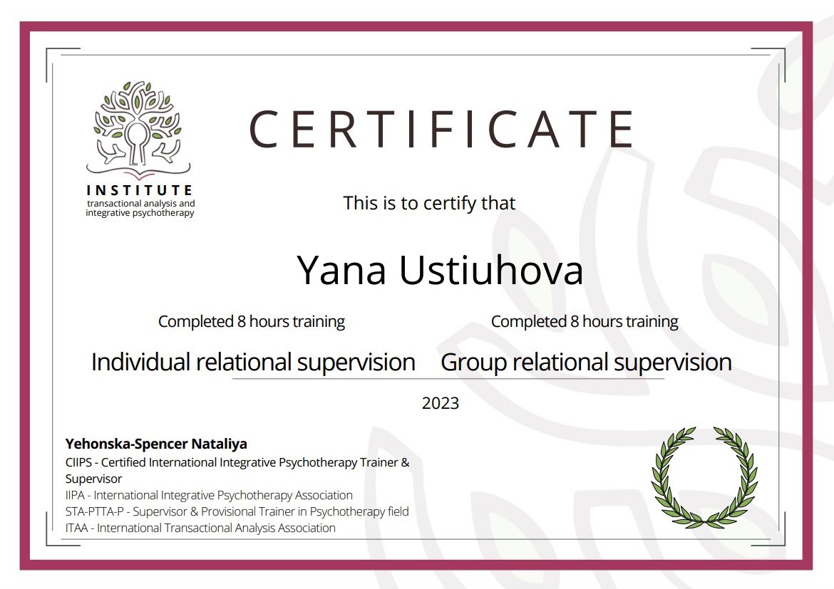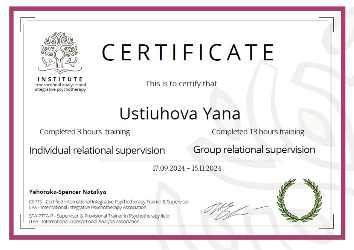 2. Украинский союз транзактного анализа, тренер Екатерина Булгакова.
