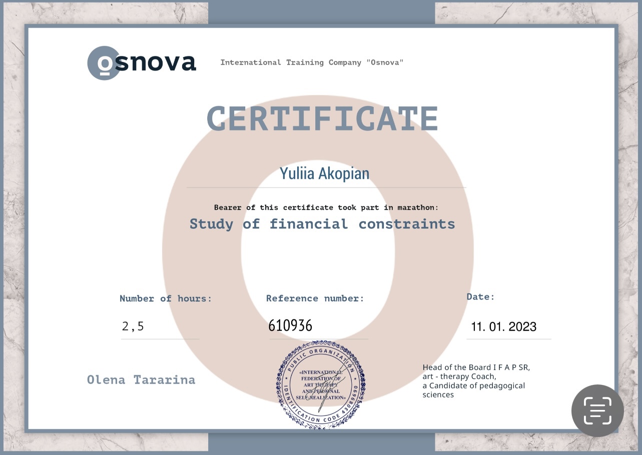 Сертификаты: