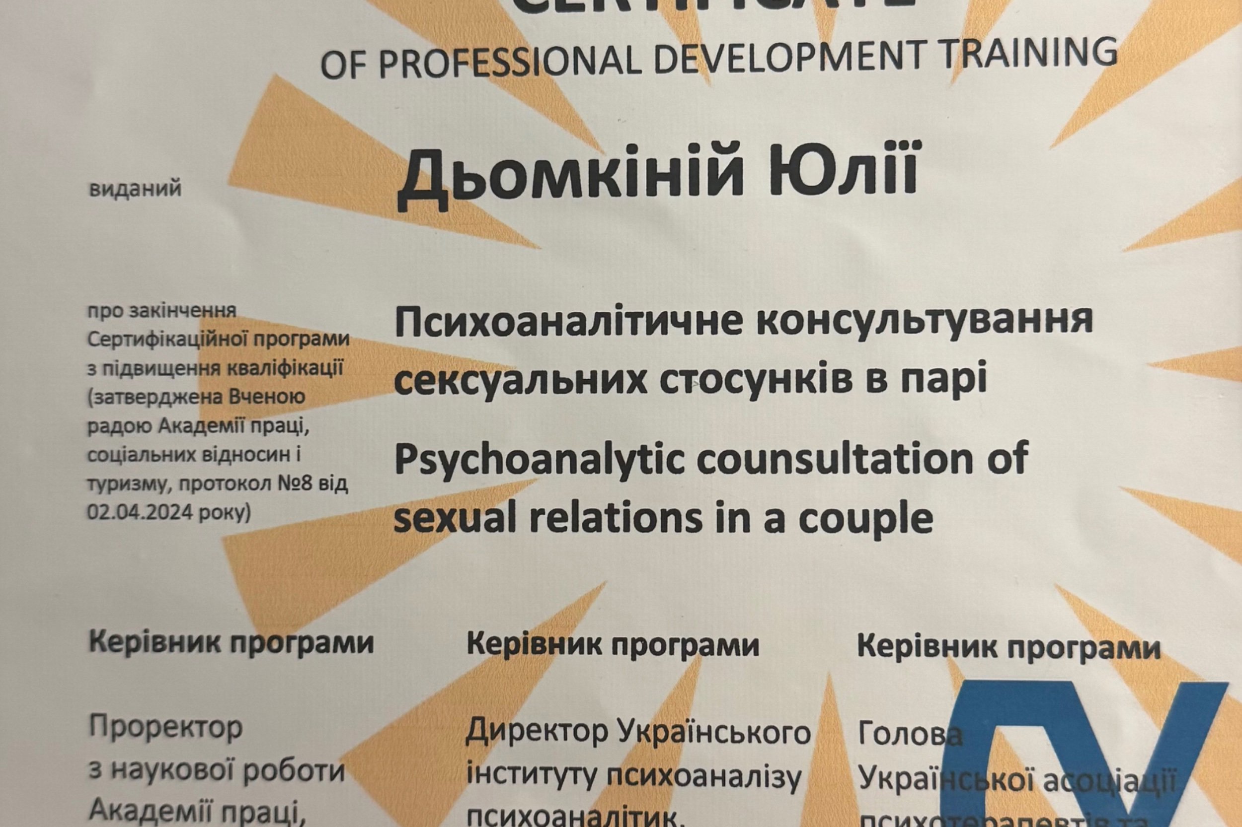 В голове была невероятная каша, огромное количество страхов и полное не понимание что делать. Терапия прошла невероятно душевно. Чувствовала себя очень спокойно. Юля сразу предупредил что если мне понадобится для сеанса чуть больше часа это не будет проблемой. От этого я смогла максимально открыться и проговорить абсолютно все что меня беспокоит. Не чувствовала что мне нужно срочно вспомнить и вылить на терапевта все чтоб уложиться в 40 минут сеанса. Затронули все глубинные темы которы меня волновали многие годы. Поискали и нашли ответы на те вопросы которые были для меня тупиковыми. Обсудили чувство вины, подавленную агрессивность, комплекс жертвы, скрытые страхи, вообще абьюзивные отношения. После сеанса я вышла с четким видением решения моей проблемы и что самое для меня было важное планом как действовать дальше, в каком направлении работать. Проще говоря после сеанса я почувствовала в себе силы и желание справляться, пропало чувство абсолютного тупика.