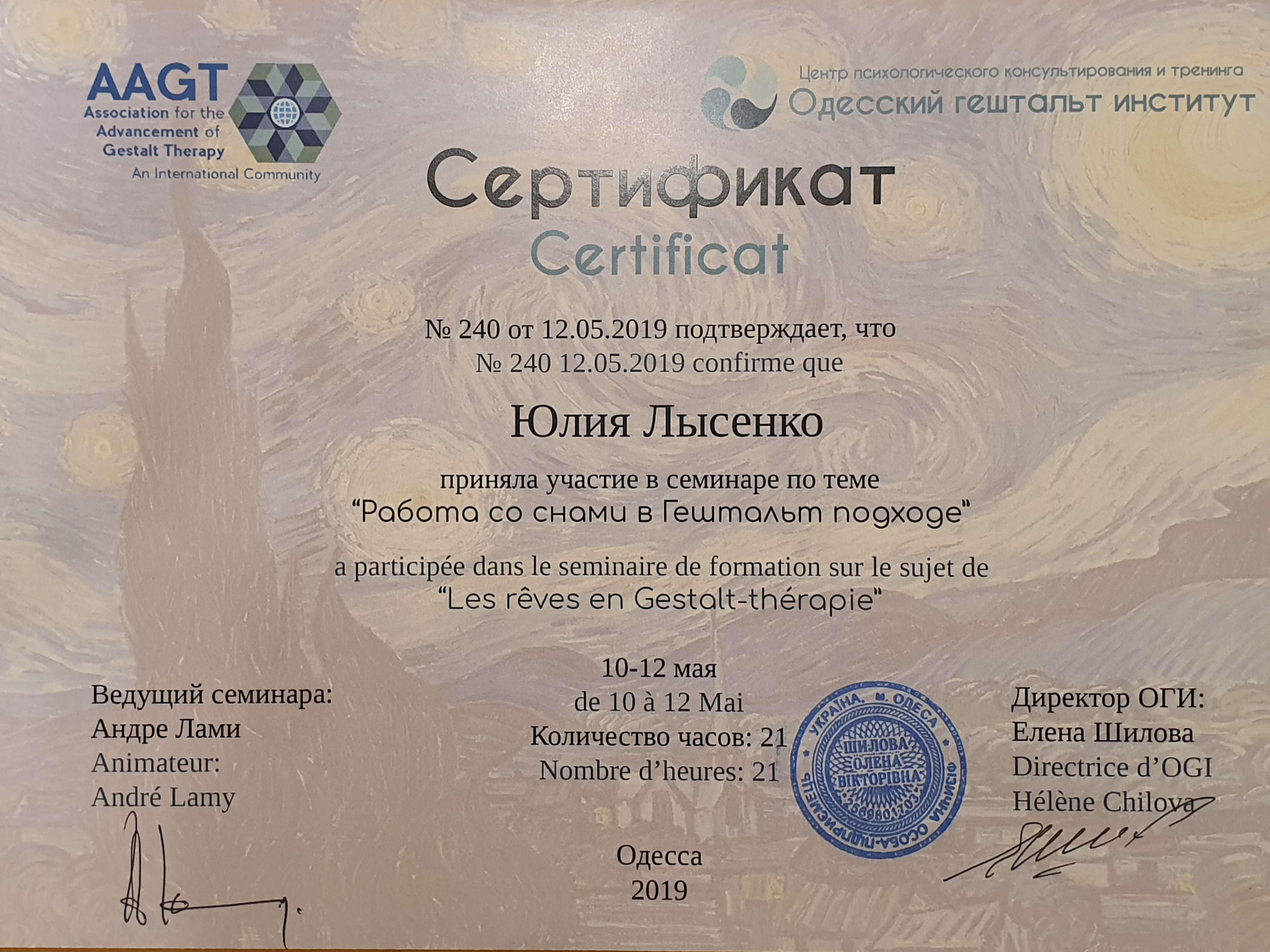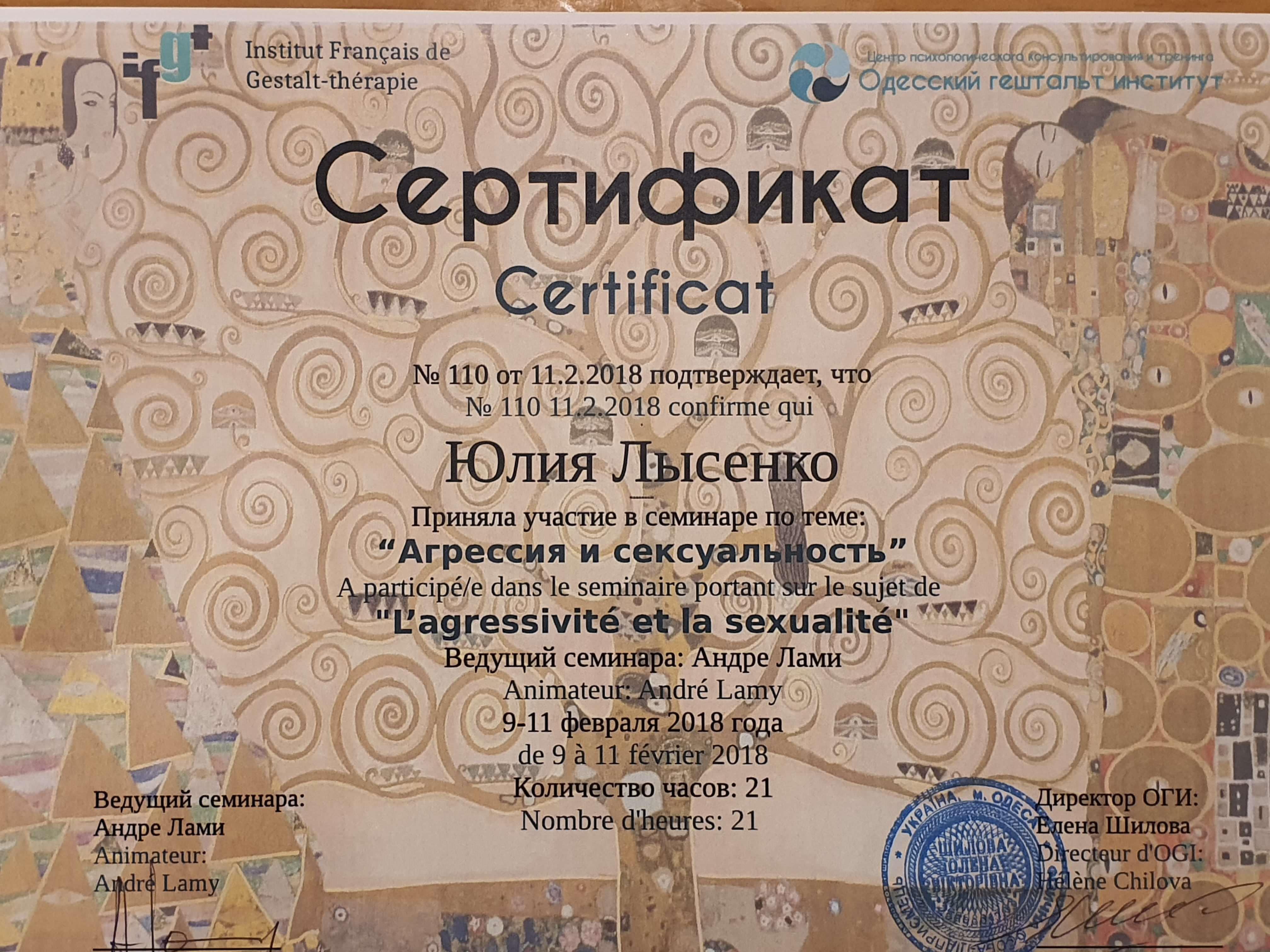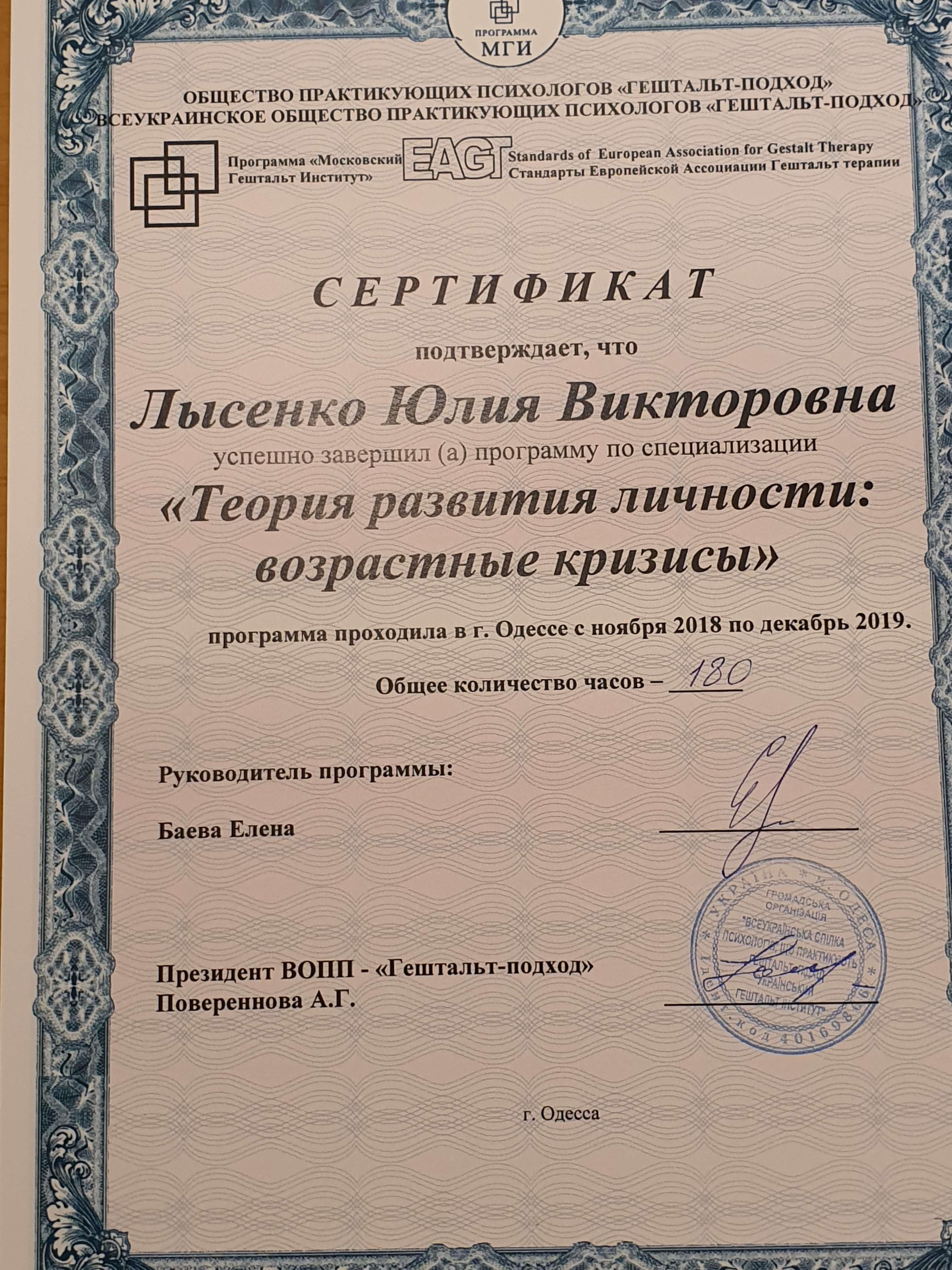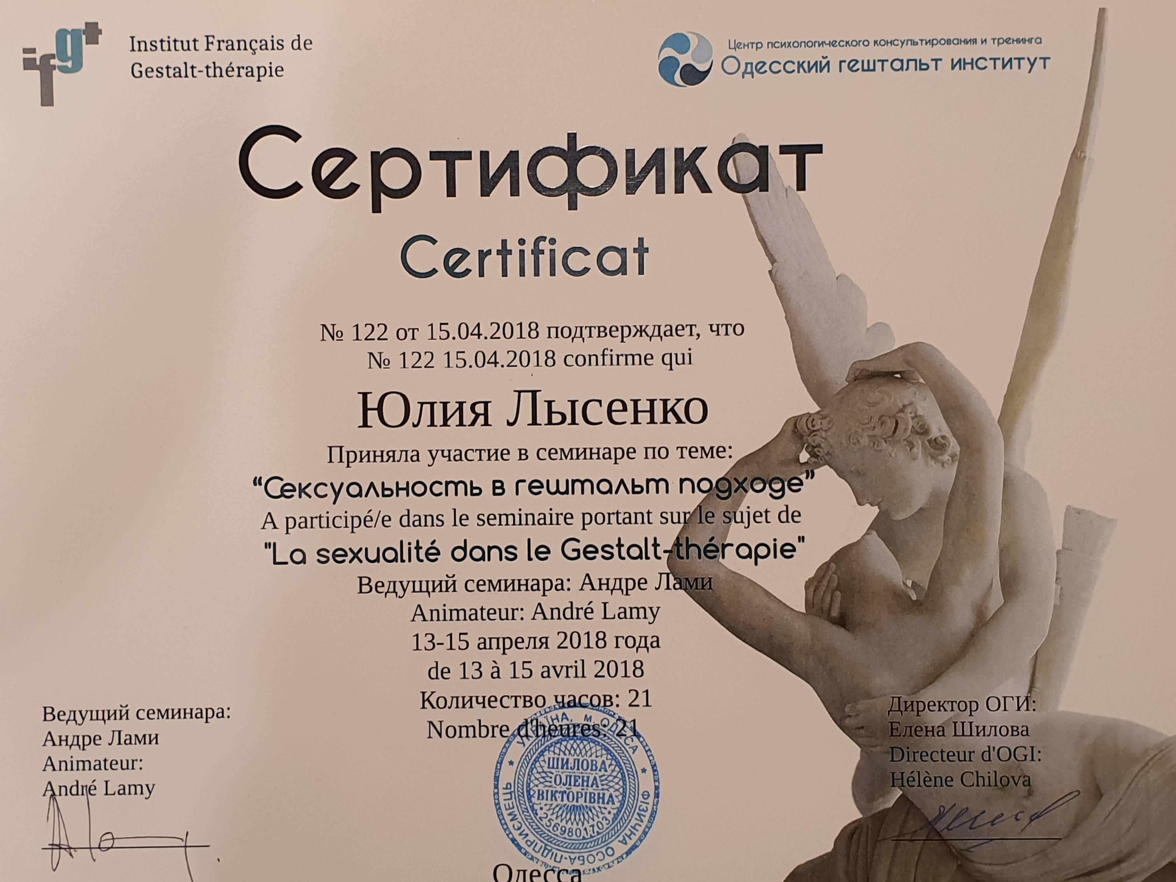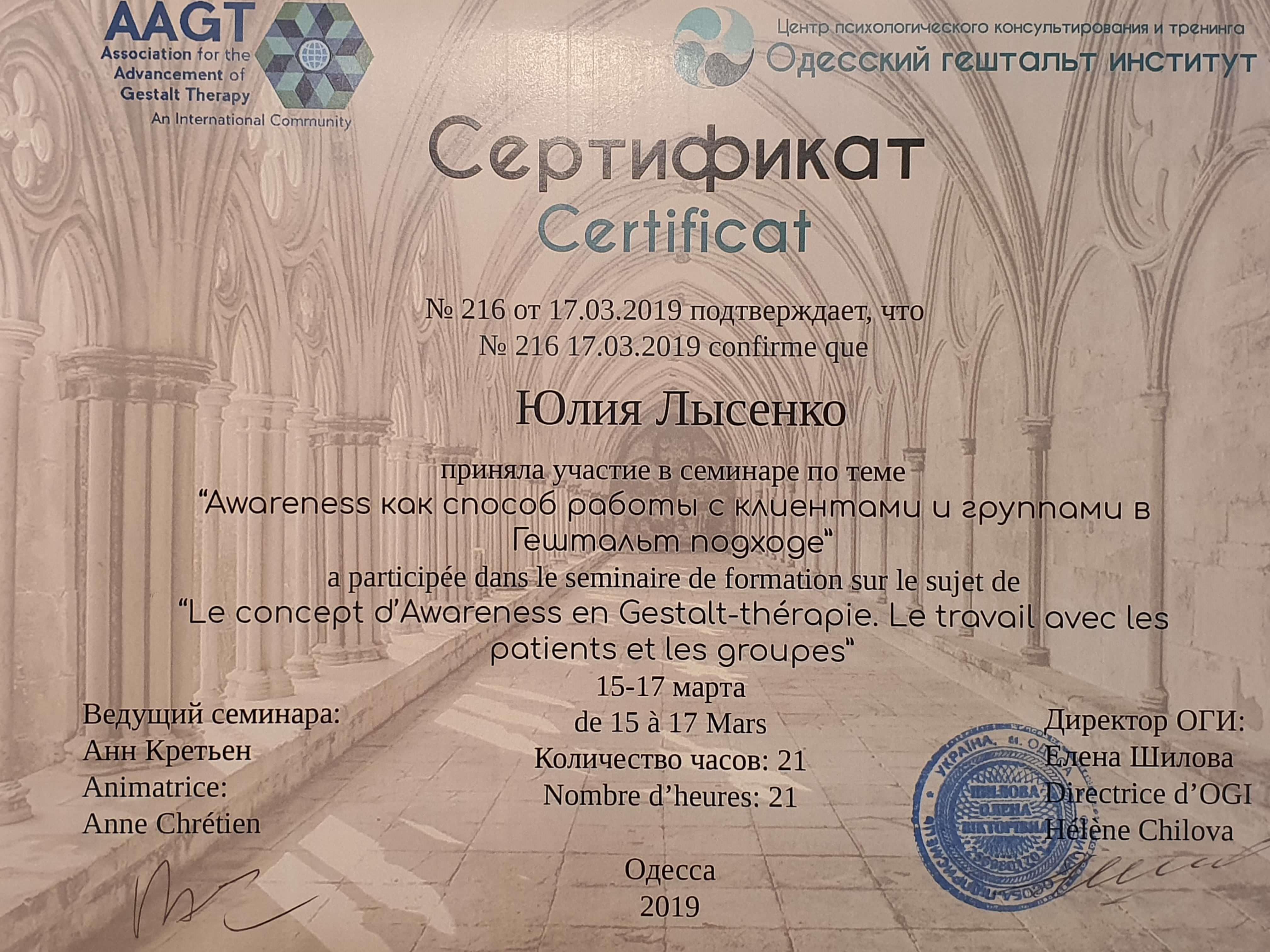 Регулярно прохожу индивидуальную и групповую психотеррарию (раз в неделю). Повышаю квалификацию регулярно, посещаю семинары, обучающие проекты